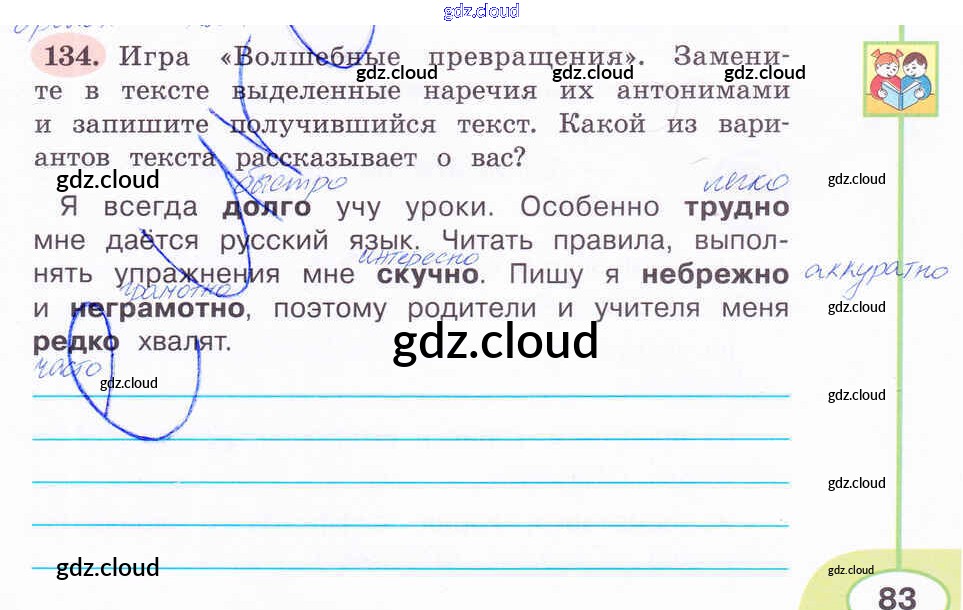 Ответ на задание 134 Рабочая тетрадь Русский язык за 4 (четвертый) класс Климанова Перспектива 2016 Часть 1, 2