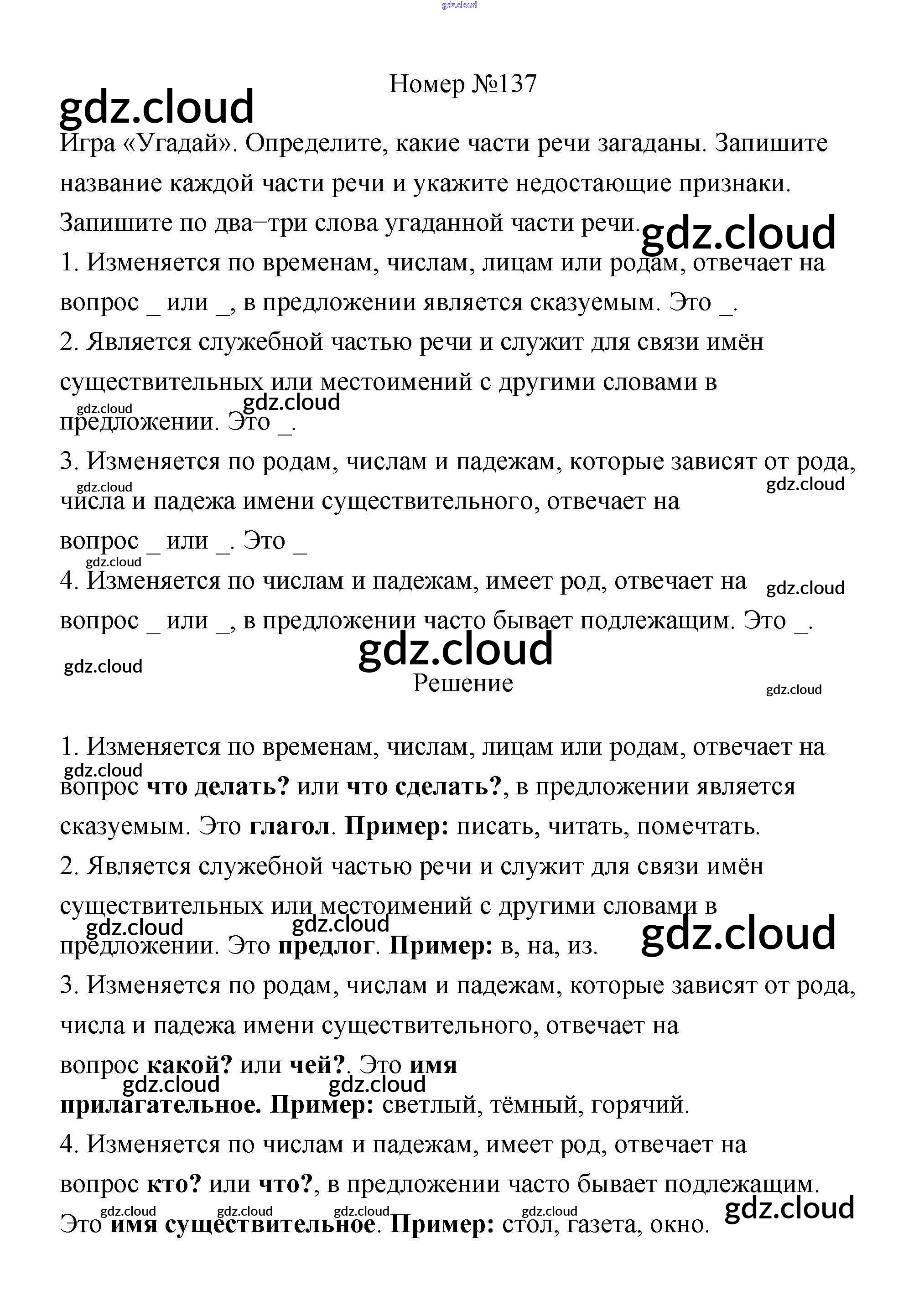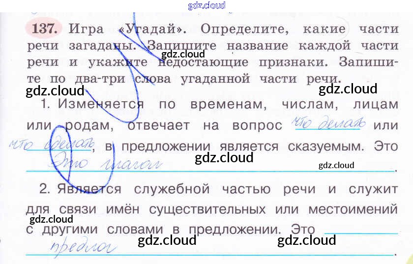 Ответ на задание 137 Рабочая тетрадь Русский язык за 4 (четвертый) класс Климанова Перспектива 2016 Часть 1, 2