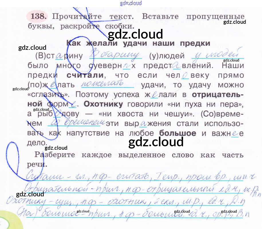 Ответ на задание 138 Рабочая тетрадь Русский язык за 4 (четвертый) класс Климанова Перспектива 2016 Часть 1, 2