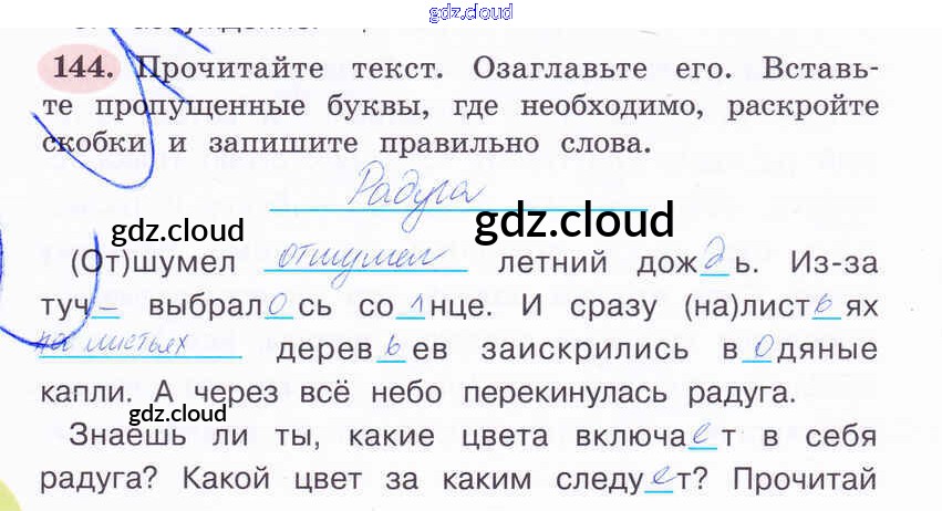 Ответ на задание 144 Рабочая тетрадь Русский язык за 4 (четвертый) класс Климанова Перспектива 2016 Часть 1, 2
