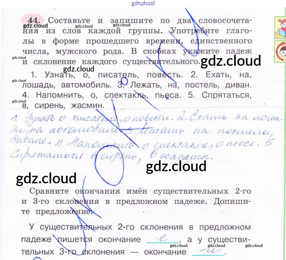 Ответ на задание 44 Рабочая тетрадь Русский язык за 4 (четвертый) класс Климанова Перспектива 2016 Часть 1, 2