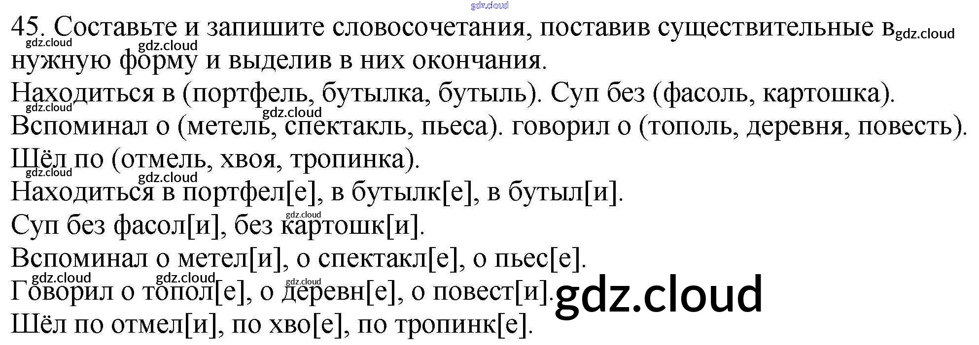 Ответ на задание 45 Рабочая тетрадь Русский язык за 4 (четвертый) класс Климанова Перспектива 2016 Часть 1, 2