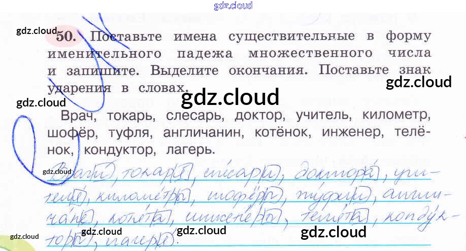 Ответ на задание 50 Рабочая тетрадь Русский язык за 4 (четвертый) класс Климанова Перспектива 2016 Часть 1, 2