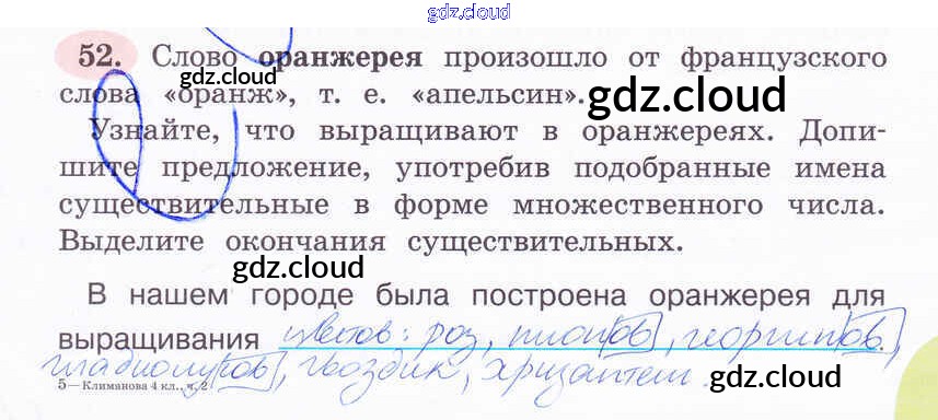 Ответ на задание 52 Рабочая тетрадь Русский язык за 4 (четвертый) класс Климанова Перспектива 2016 Часть 1, 2