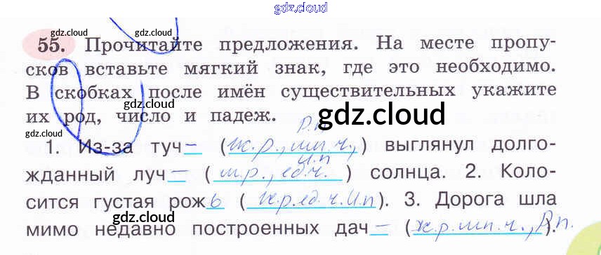 Ответ на задание 55 Рабочая тетрадь Русский язык за 4 (четвертый) класс Климанова Перспектива 2016 Часть 1, 2