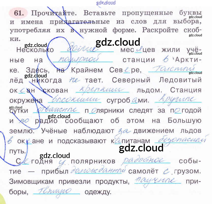 Ответ на задание 61 Рабочая тетрадь Русский язык за 4 (четвертый) класс Климанова Перспектива 2016 Часть 1, 2