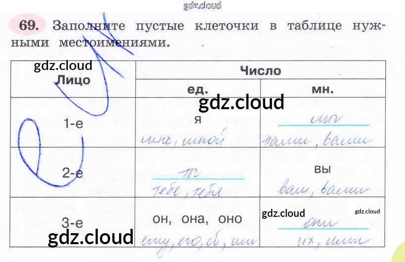 Ответ на задание 69 Рабочая тетрадь Русский язык за 4 (четвертый) класс Климанова Перспектива 2016 Часть 1, 2