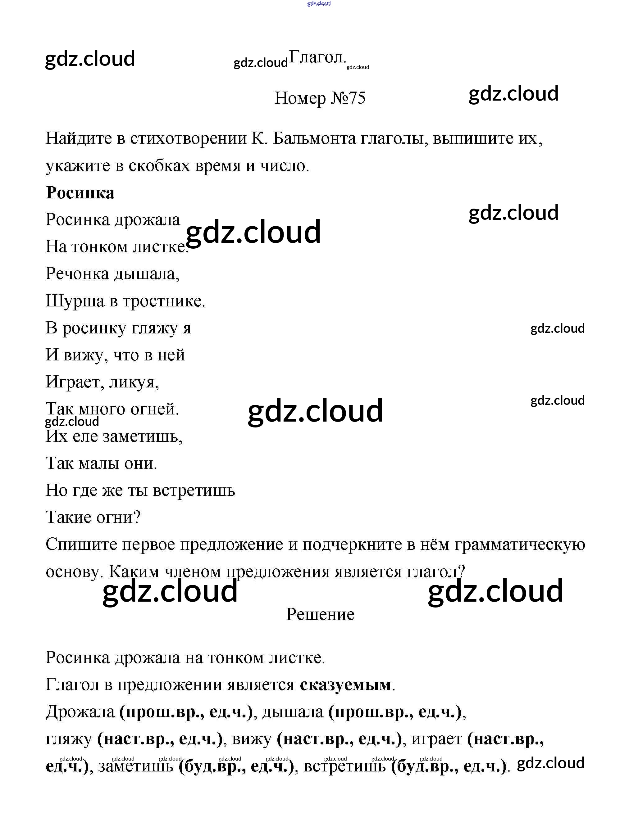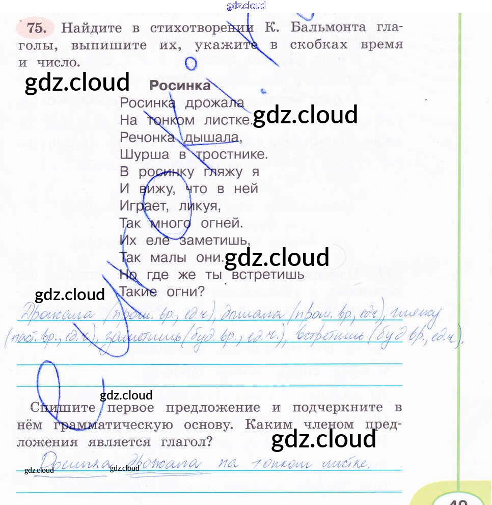 Ответ на задание 75 Рабочая тетрадь Русский язык за 4 (четвертый) класс Климанова Перспектива 2016 Часть 1, 2