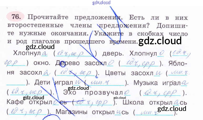 Ответ на задание 76 Рабочая тетрадь Русский язык за 4 (четвертый) класс Климанова Перспектива 2016 Часть 1, 2