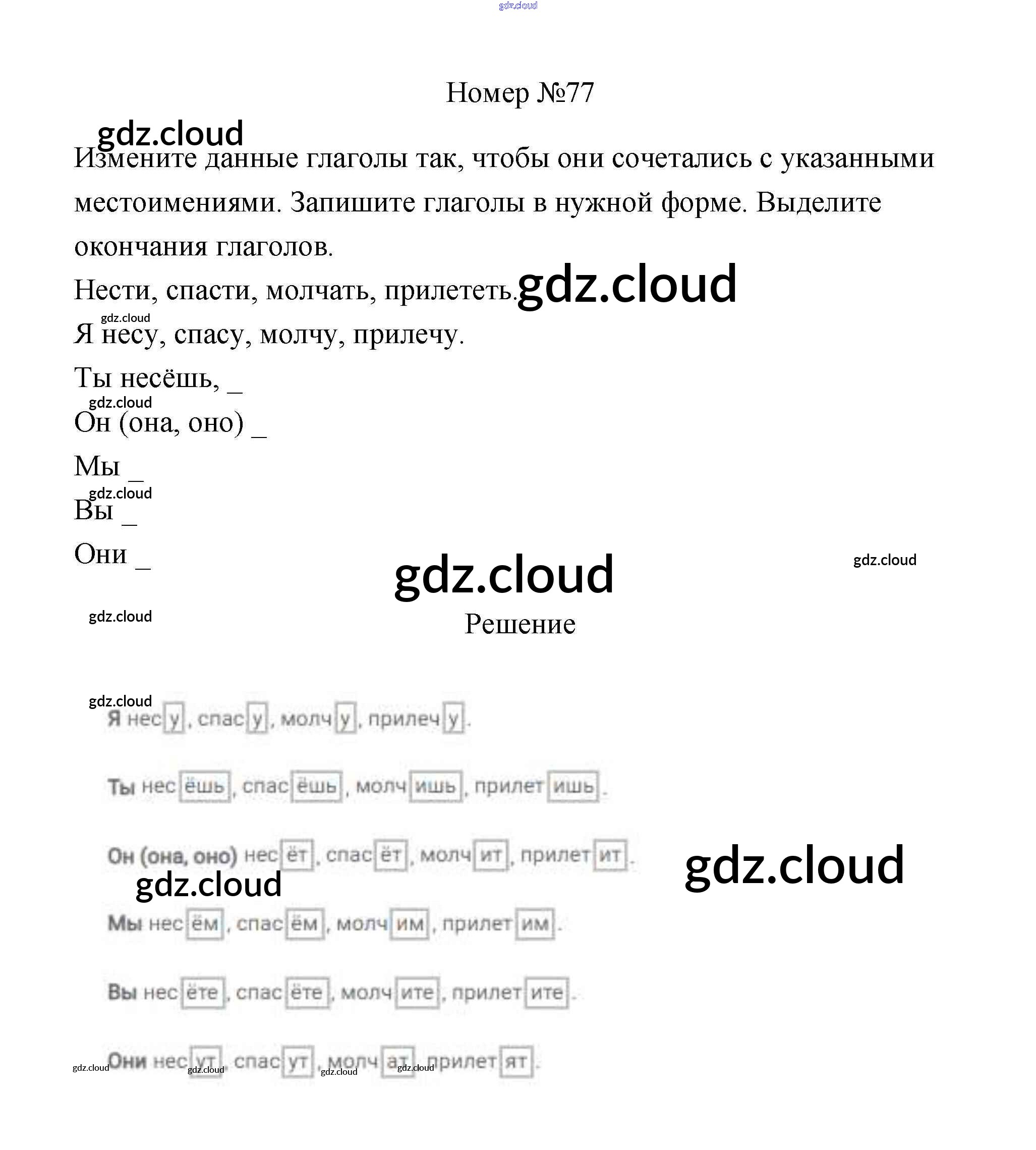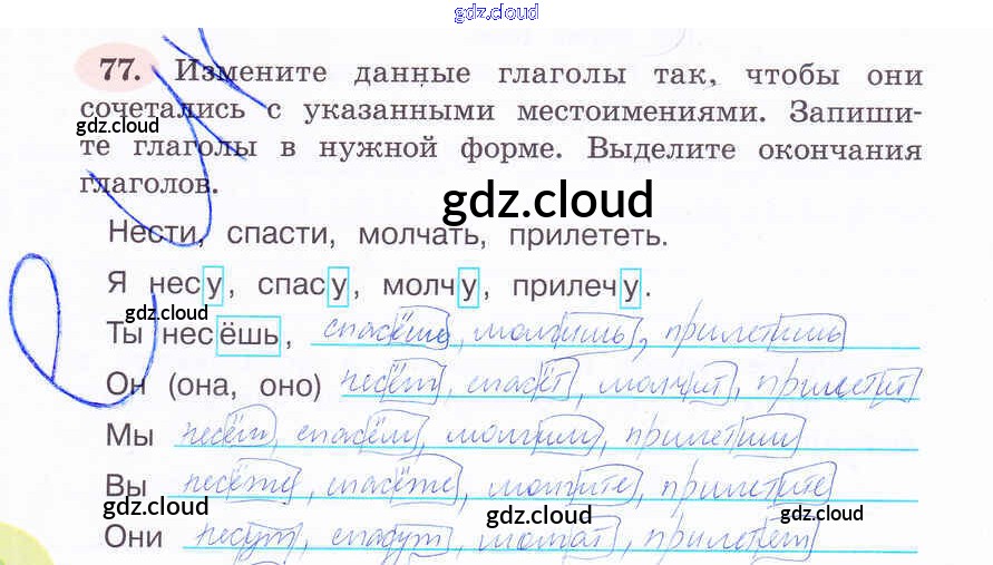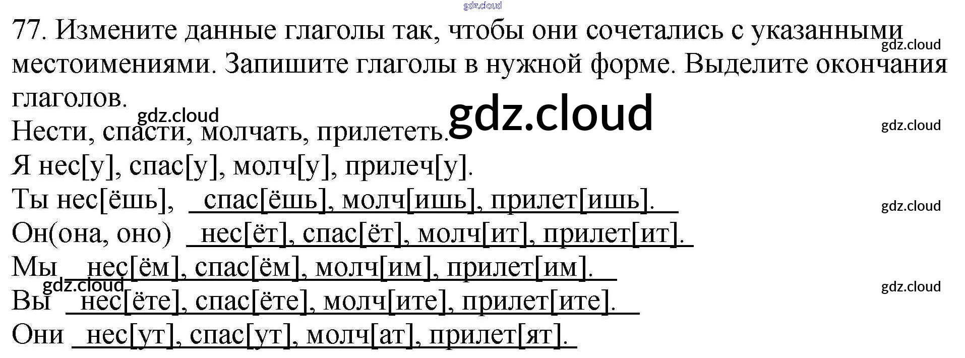 Ответ на задание 77 Рабочая тетрадь Русский язык за 4 (четвертый) класс Климанова Перспектива 2016 Часть 1, 2