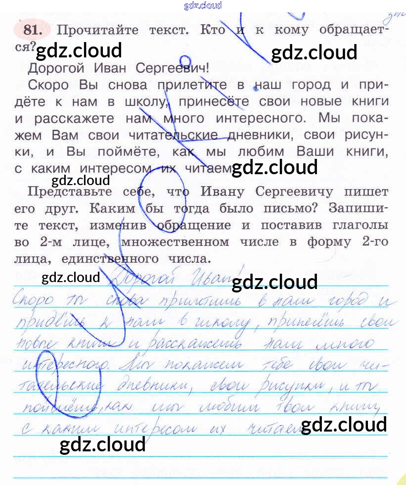 Ответ на задание 81 Рабочая тетрадь Русский язык за 4 (четвертый) класс Климанова Перспектива 2016 Часть 1, 2