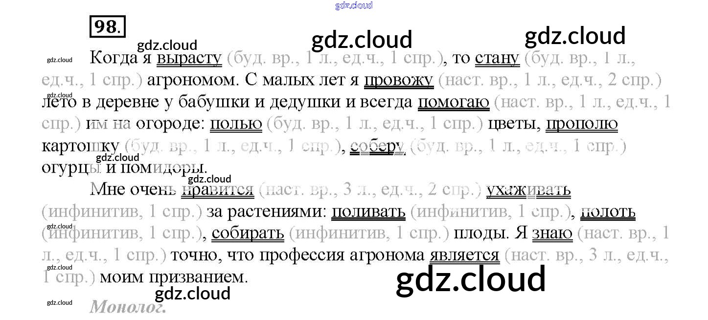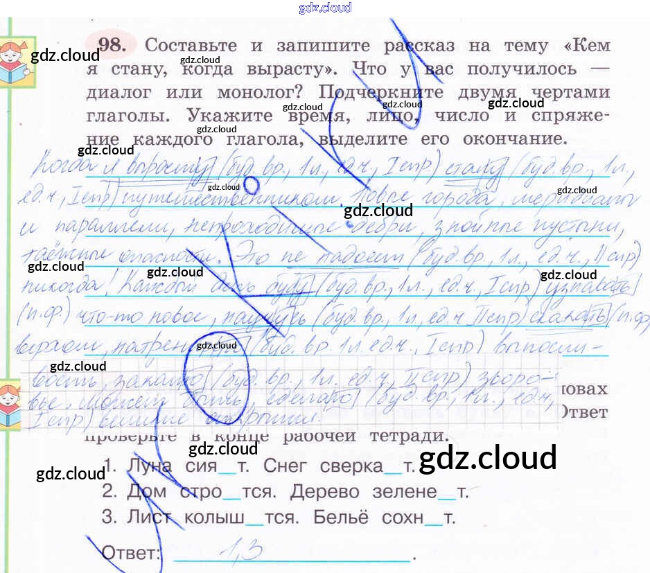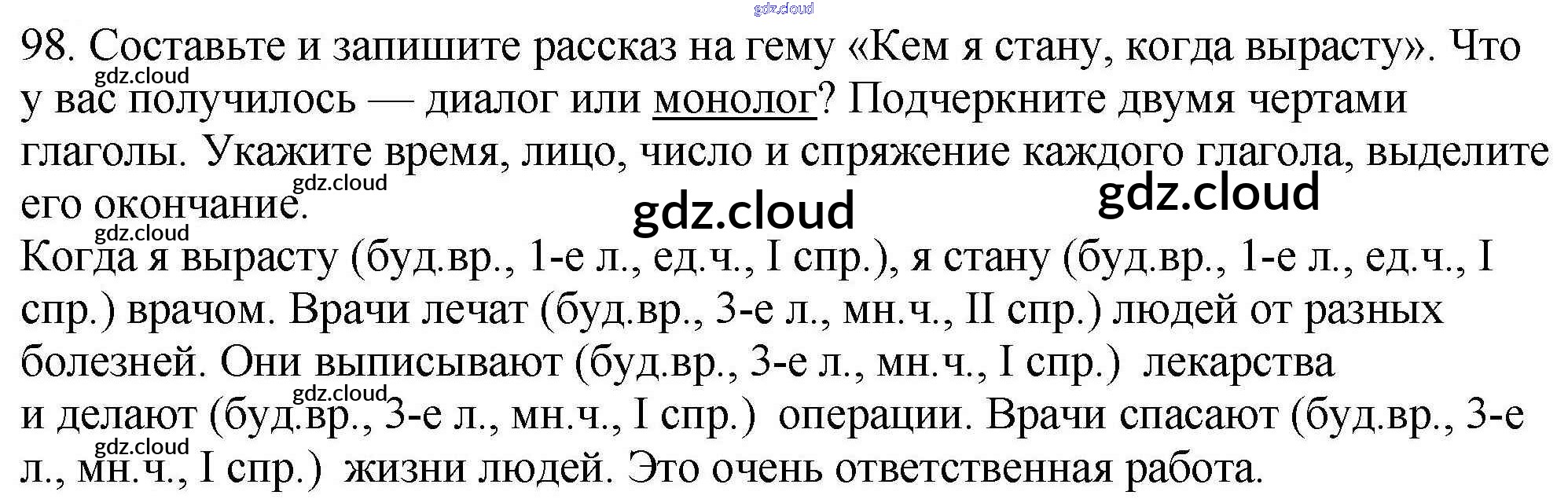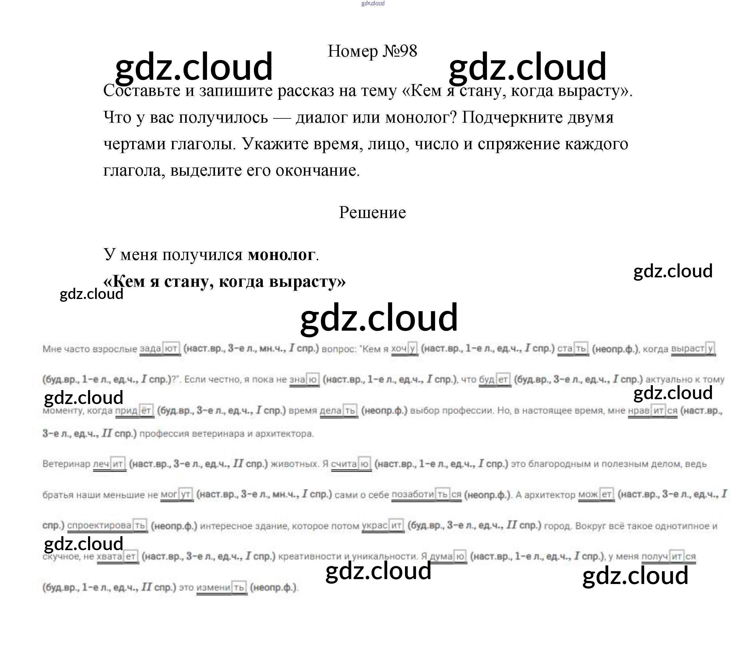 Ответ на задание 98 Рабочая тетрадь Русский язык за 4 (четвертый) класс Климанова Перспектива 2016 Часть 1, 2