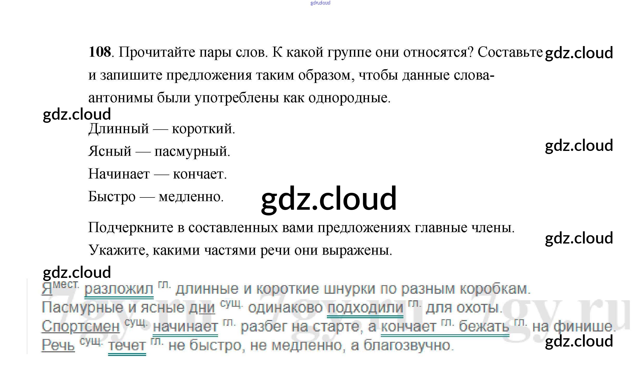 Ответ на задание 108 Учебник Русский язык за 4 (четвертый) класс Климанова, Бабушкина Перспектива 2014 Часть 1, 2