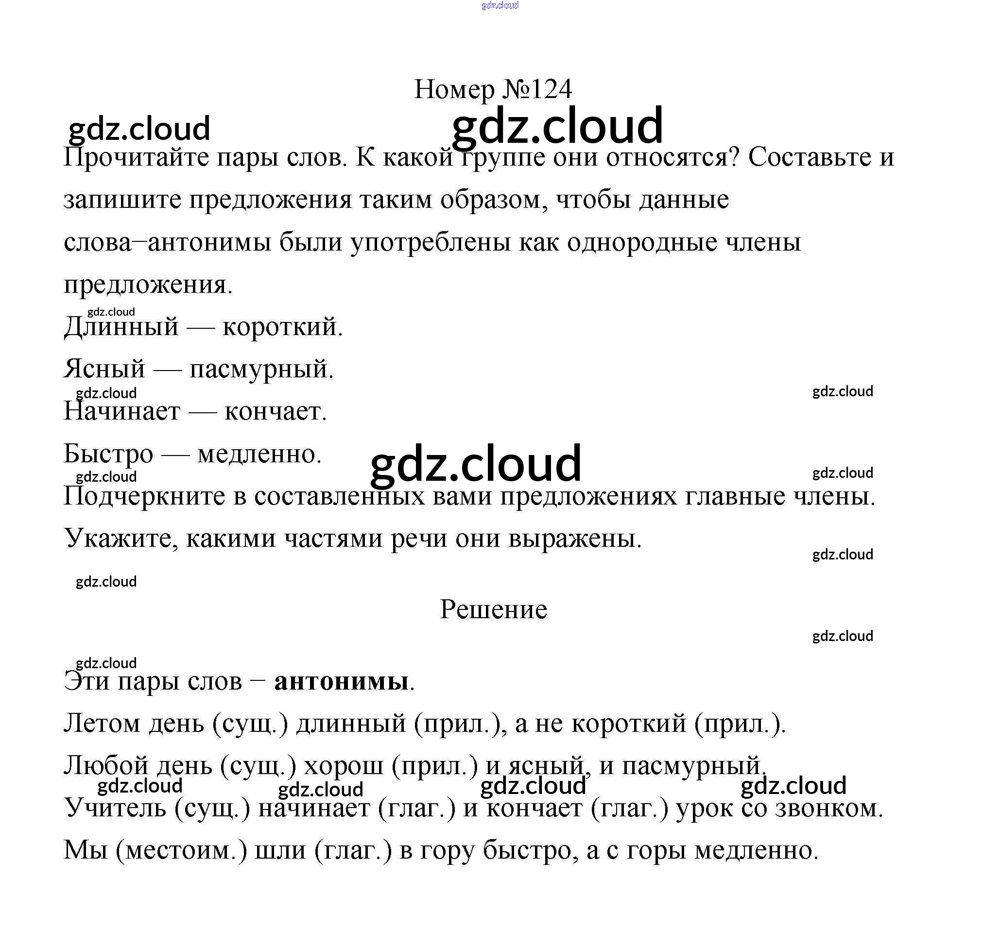 Ответ на задание 124 Учебник Русский язык за 4 (четвертый) класс Климанова, Бабушкина Перспектива 2014 Часть 1, 2