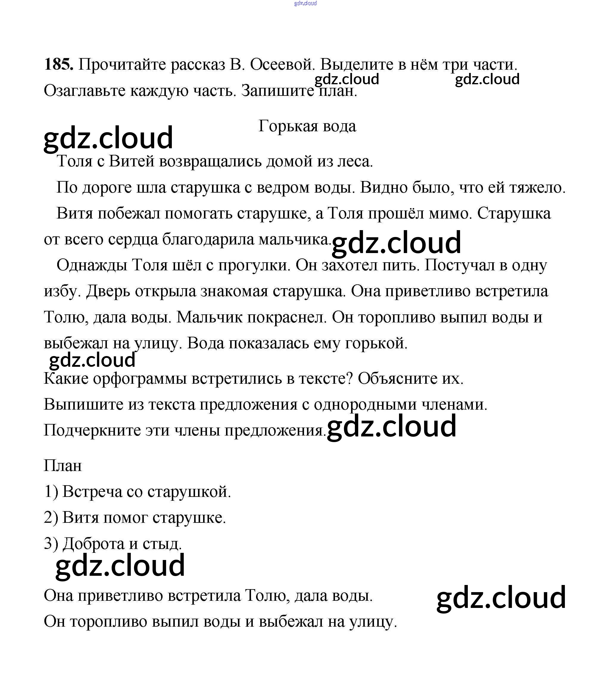 Ответ на задание 185 Учебник Русский язык за 4 (четвертый) класс Климанова, Бабушкина Перспектива 2014 Часть 1, 2