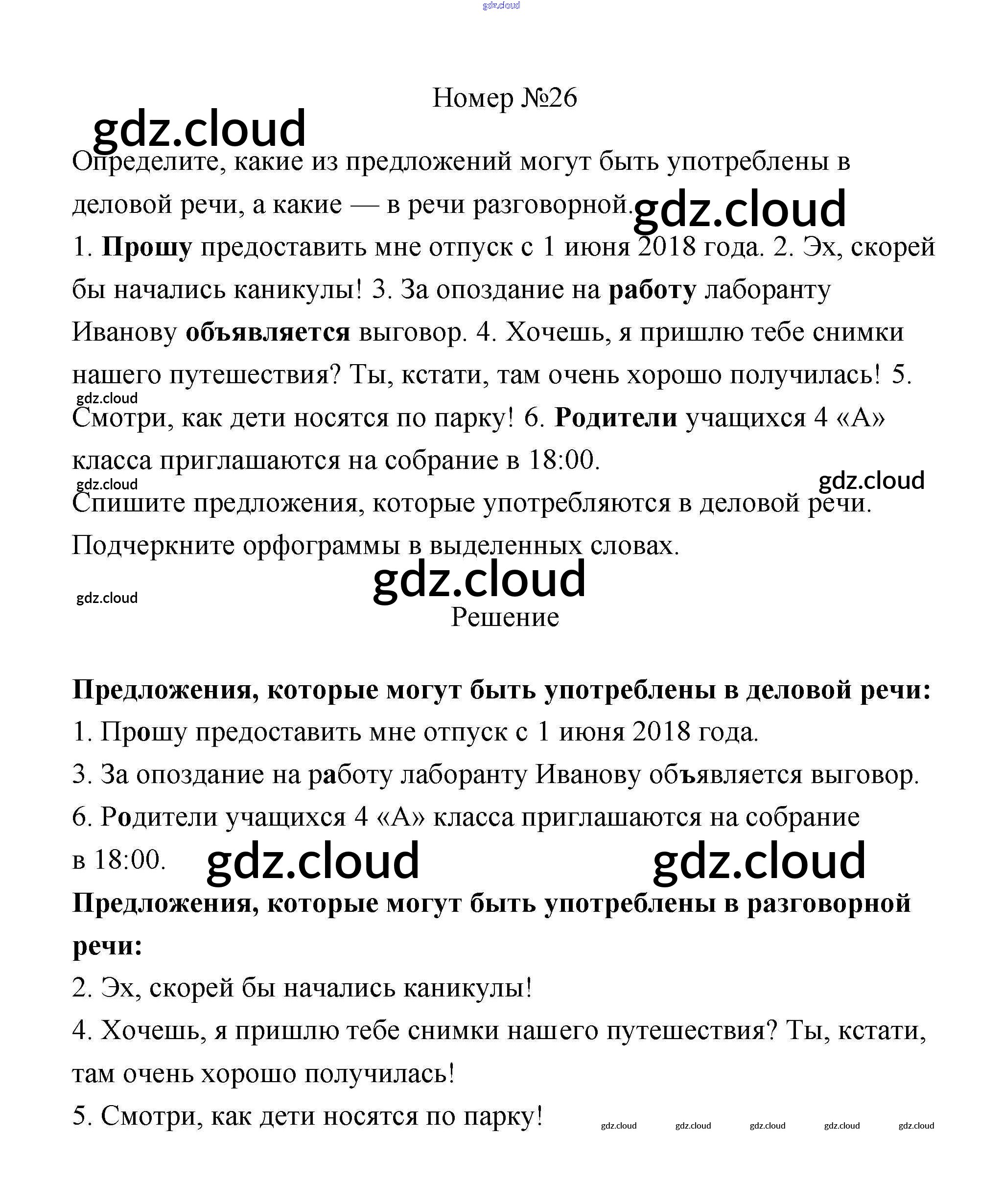 Ответ на задание 26 Учебник Русский язык за 4 (четвертый) класс Климанова, Бабушкина Перспектива 2014 Часть 1, 2