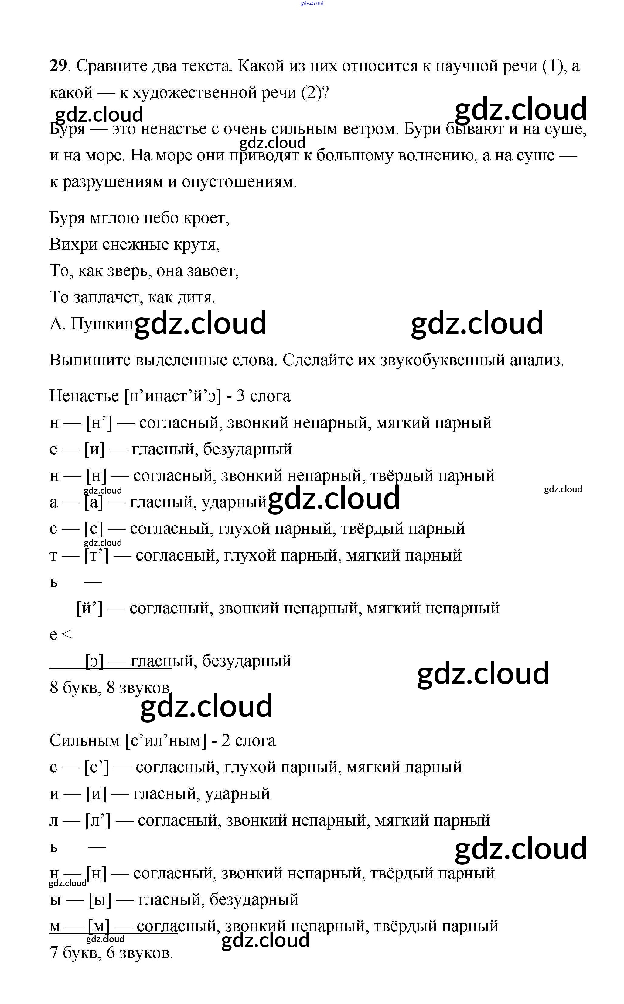 Ответ на задание 29 Учебник Русский язык за 4 (четвертый) класс Климанова, Бабушкина Перспектива 2014 Часть 1, 2
