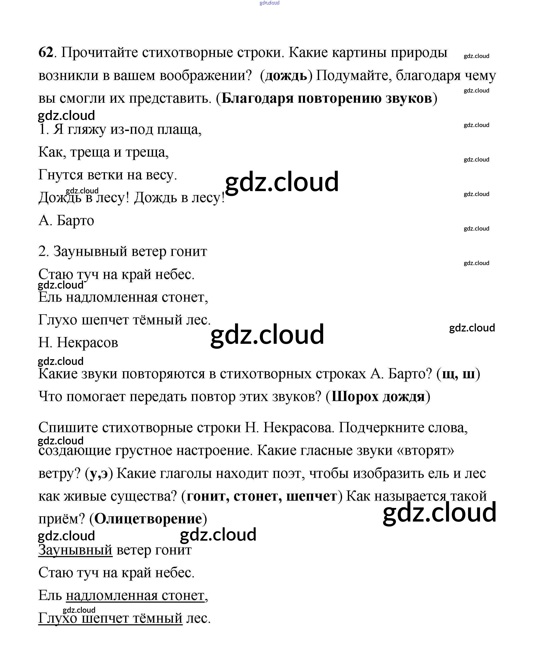 Ответ на задание 62 Учебник Русский язык за 4 (четвертый) класс Климанова, Бабушкина Перспектива 2014 Часть 1, 2