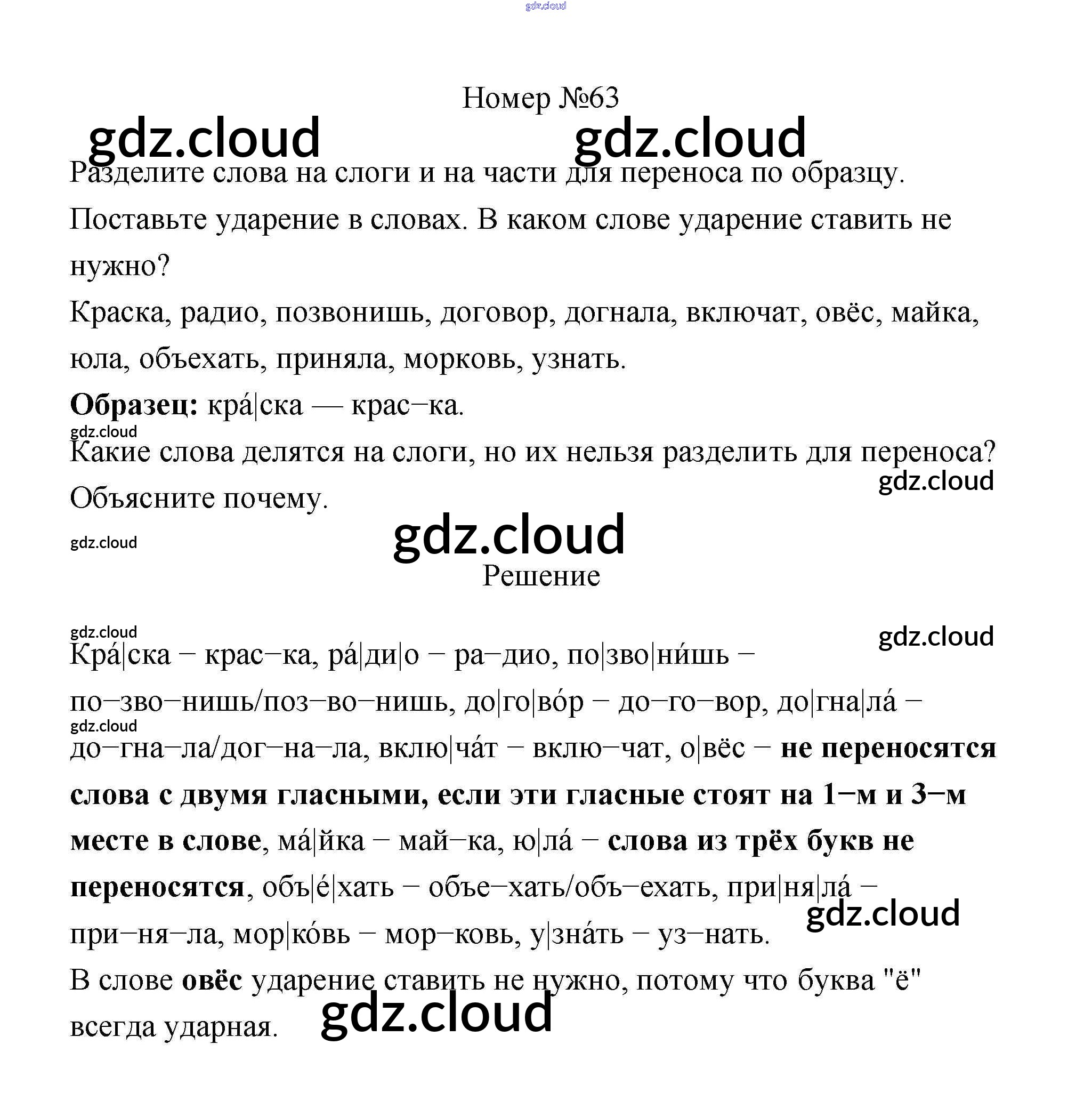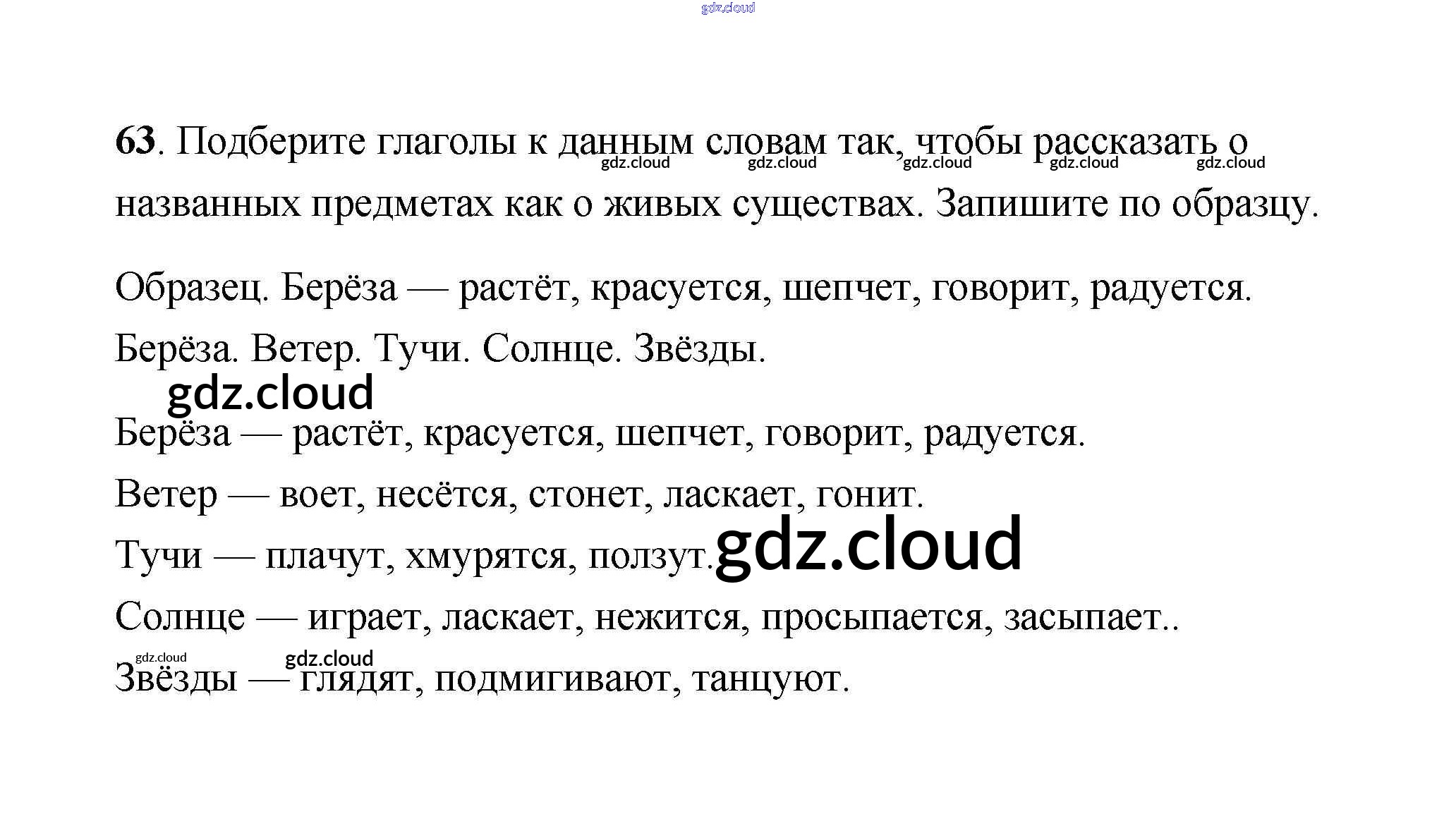 Ответ на задание 63 Учебник Русский язык за 4 (четвертый) класс Климанова, Бабушкина Перспектива 2014 Часть 1, 2