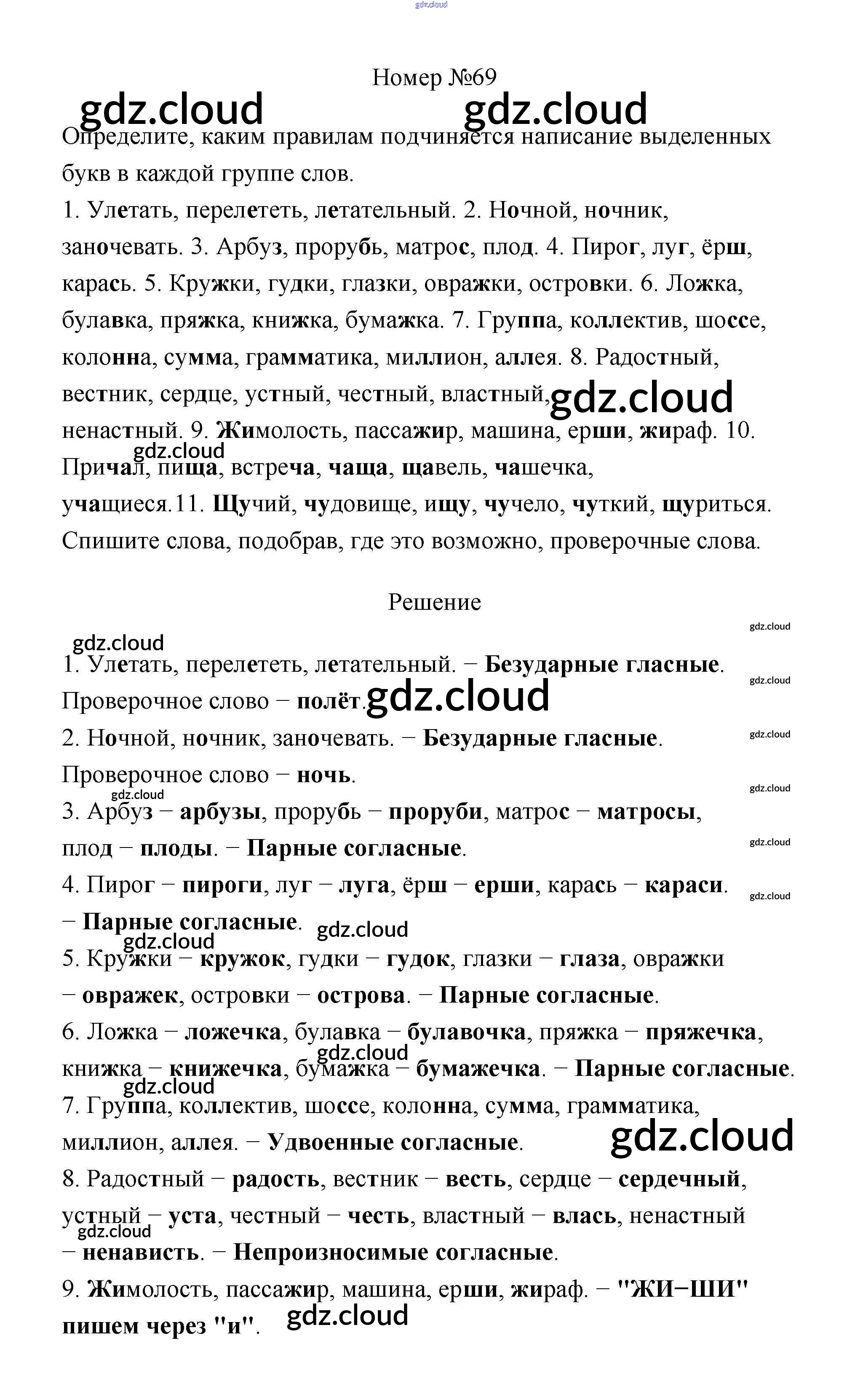Ответ на задание 69 Учебник Русский язык за 4 (четвертый) класс Климанова, Бабушкина Перспектива 2014 Часть 1, 2