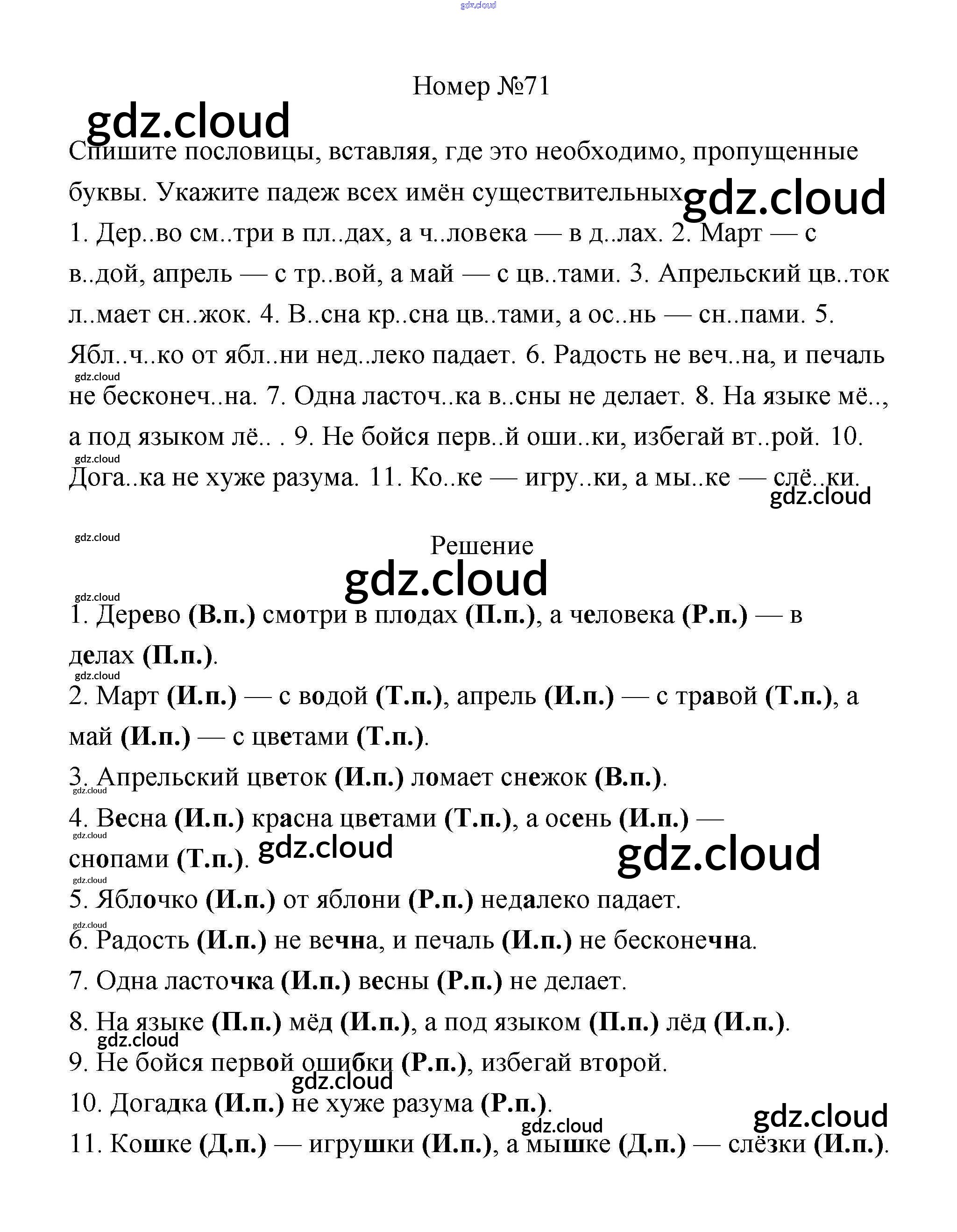 Ответ на задание 71 Учебник Русский язык за 4 (четвертый) класс Климанова, Бабушкина Перспектива 2014 Часть 1, 2