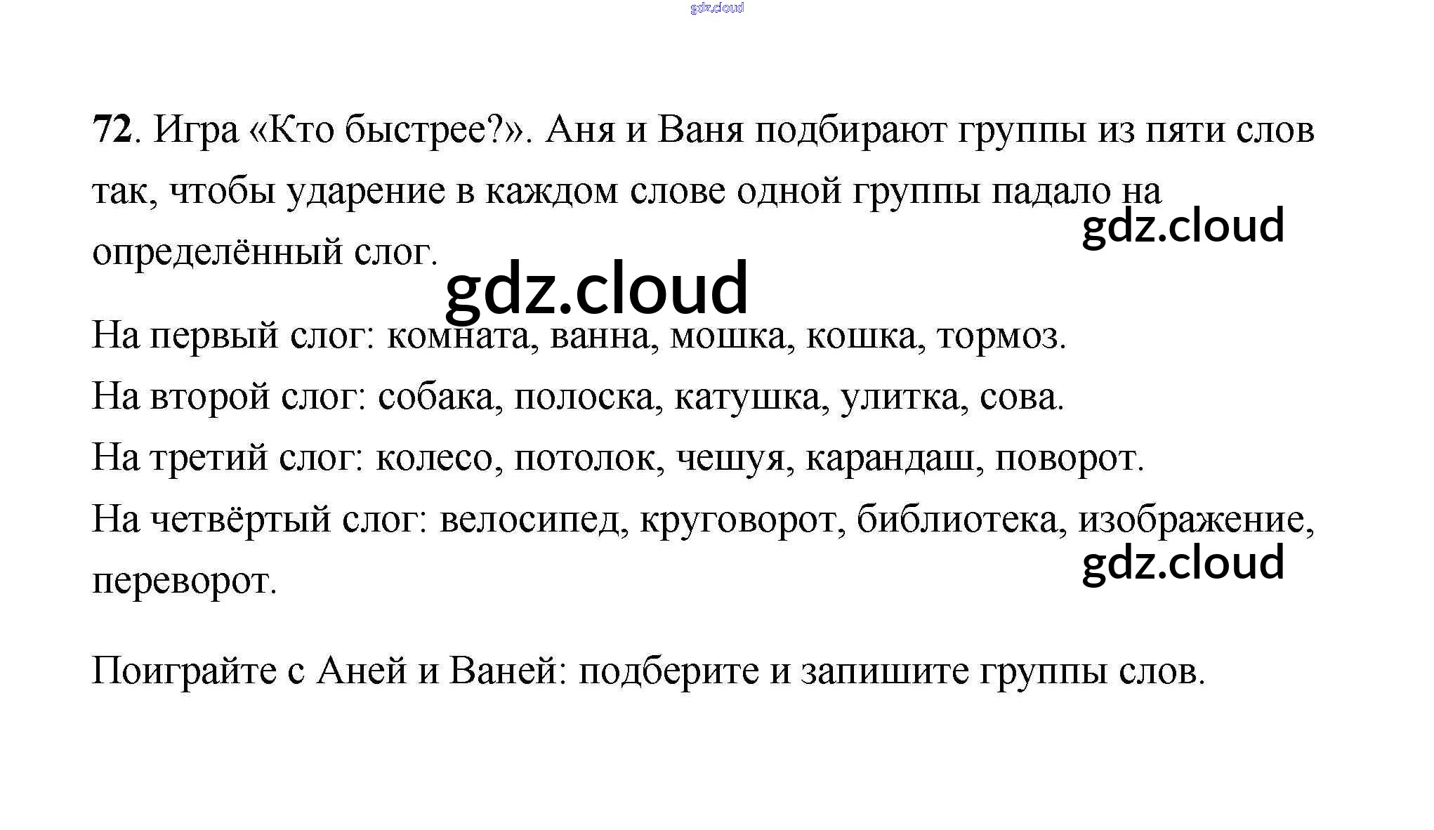 Ответ на задание 72 Учебник Русский язык за 4 (четвертый) класс Климанова, Бабушкина Перспектива 2014 Часть 1, 2
