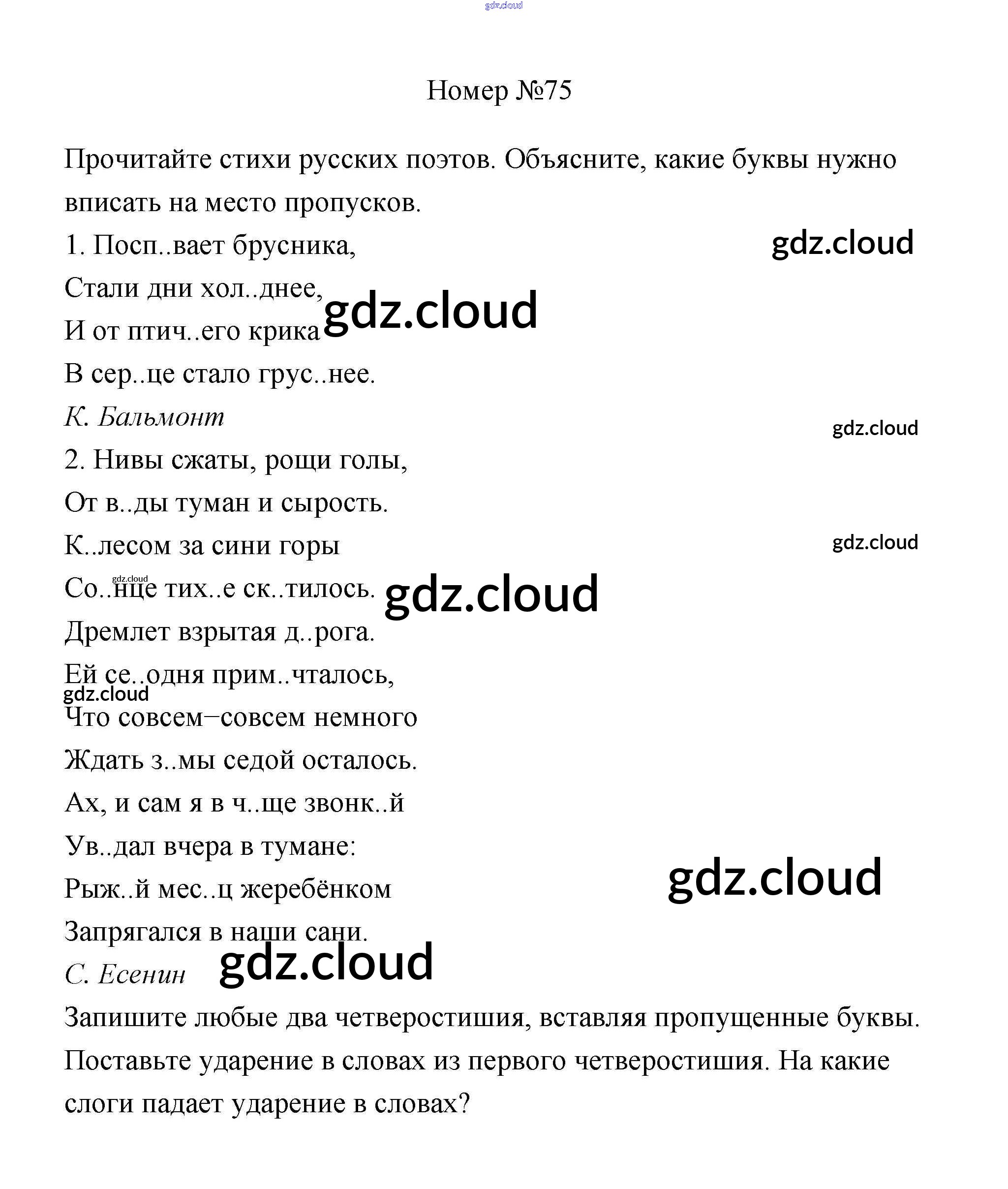Ответ на задание 75 Учебник Русский язык за 4 (четвертый) класс Климанова, Бабушкина Перспектива 2014 Часть 1, 2