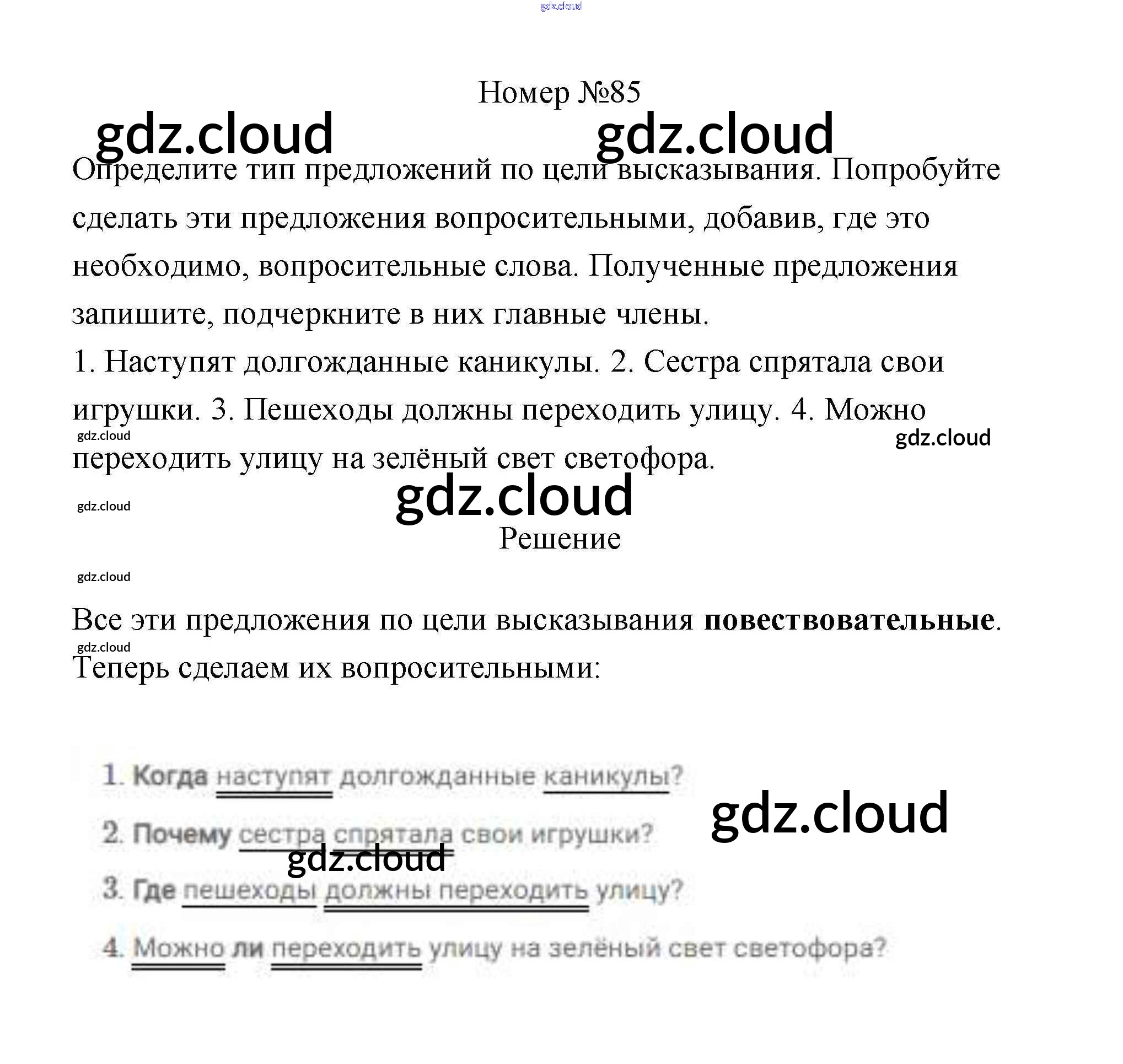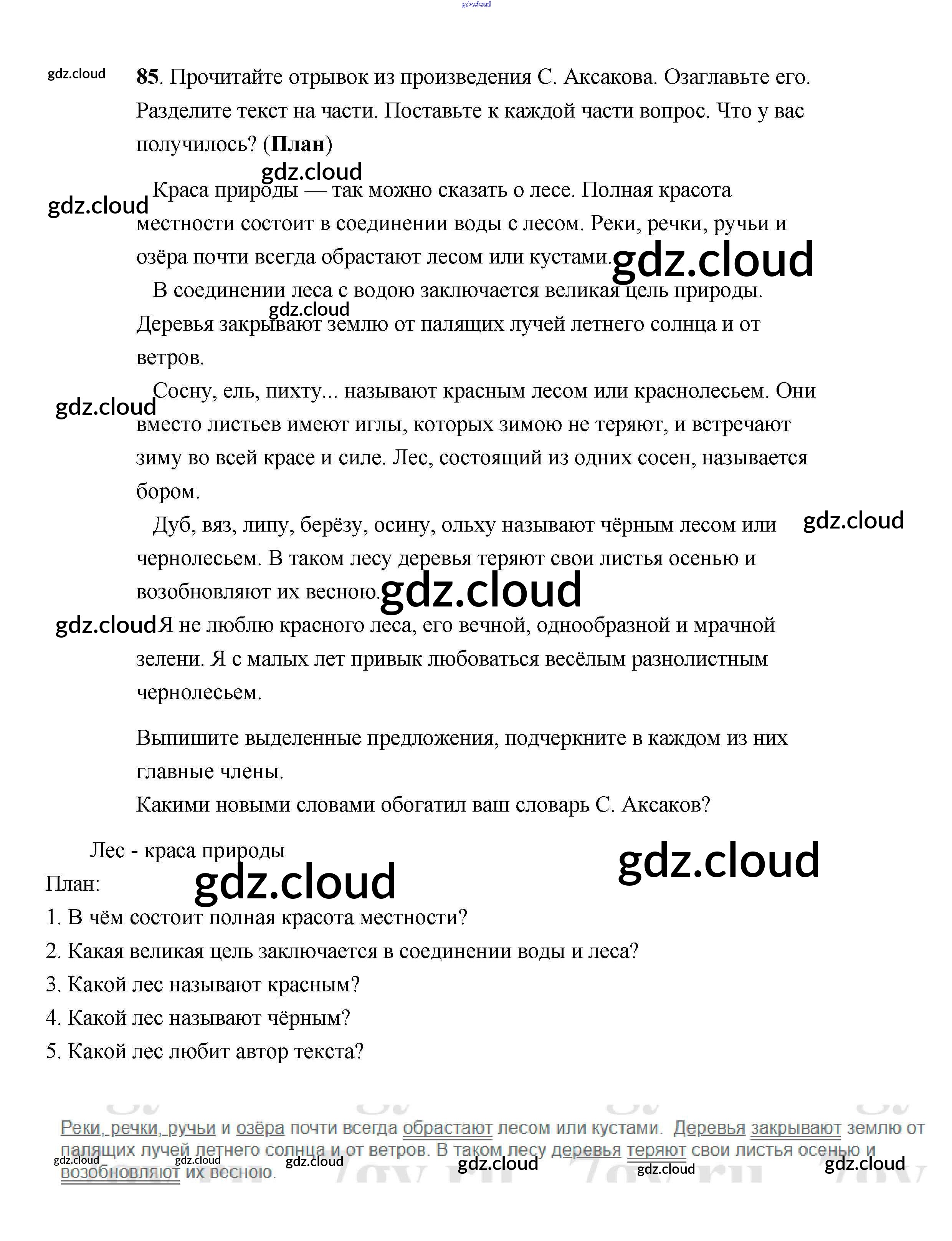 Ответ на задание 85 Учебник Русский язык за 4 (четвертый) класс Климанова, Бабушкина Перспектива 2014 Часть 1, 2