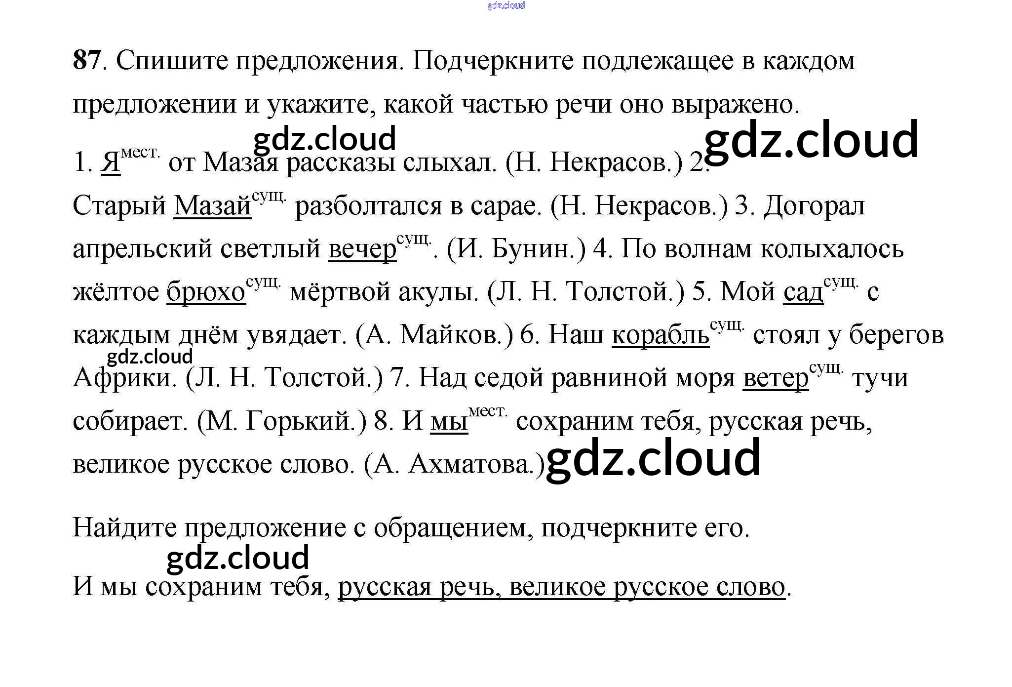 Ответ на задание 87 Учебник Русский язык за 4 (четвертый) класс Климанова, Бабушкина Перспектива 2014 Часть 1, 2