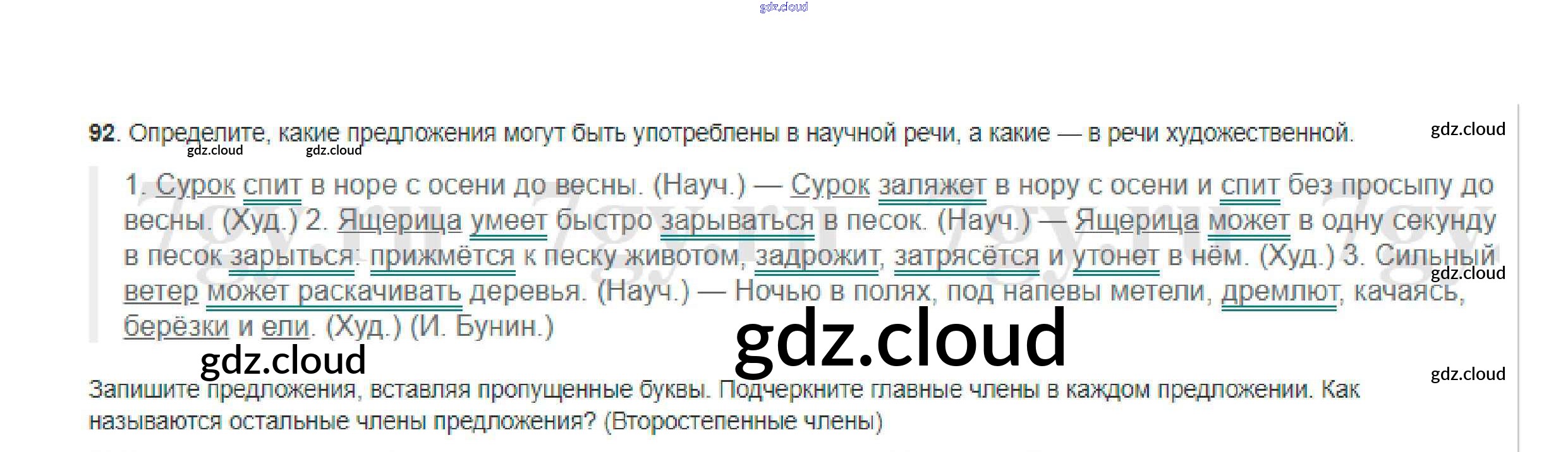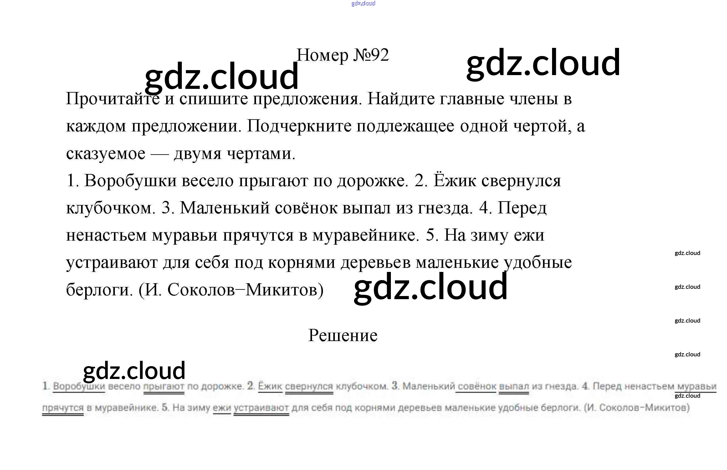 Ответ на задание 92 Учебник Русский язык за 4 (четвертый) класс Климанова, Бабушкина Перспектива 2014 Часть 1, 2