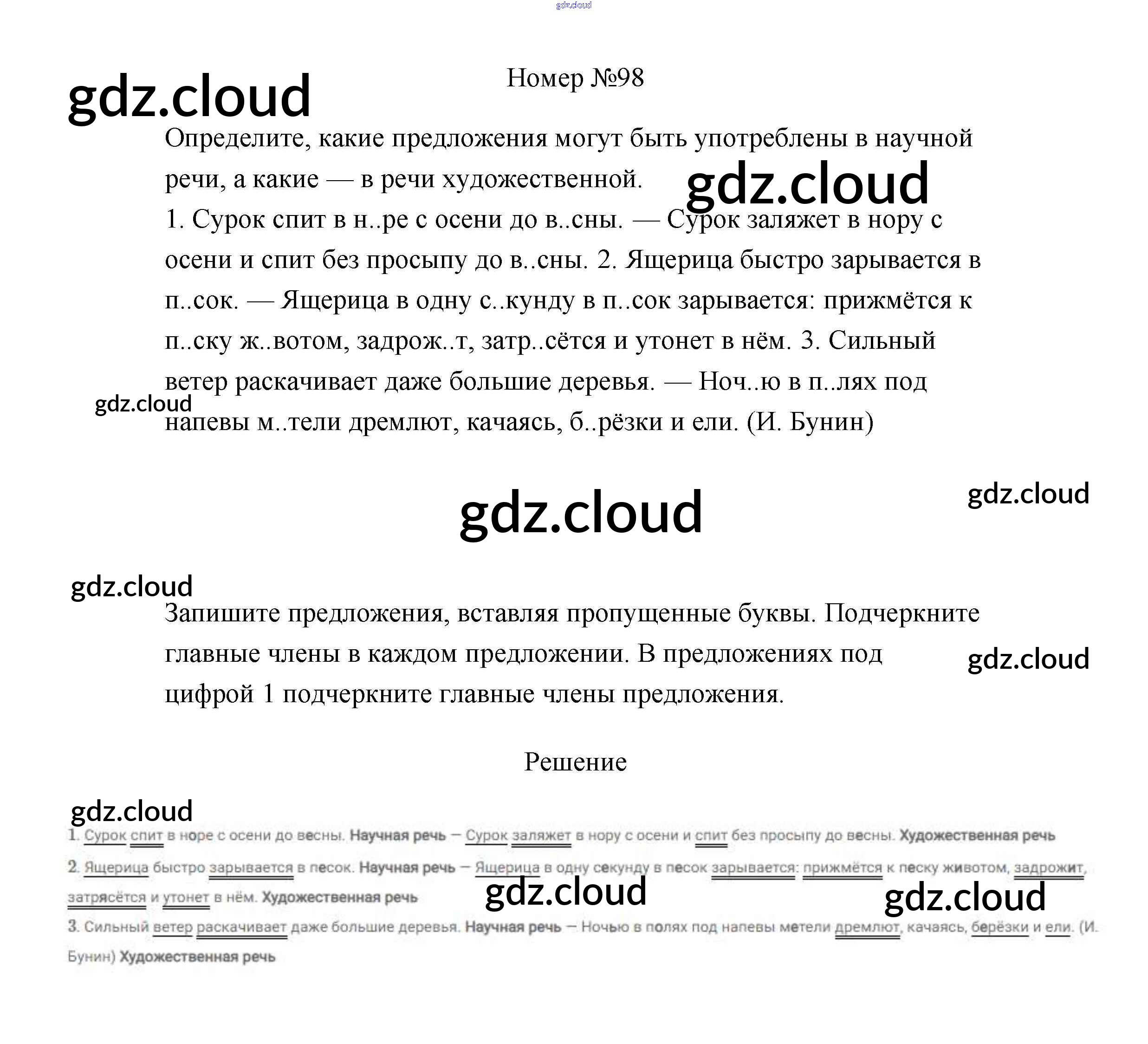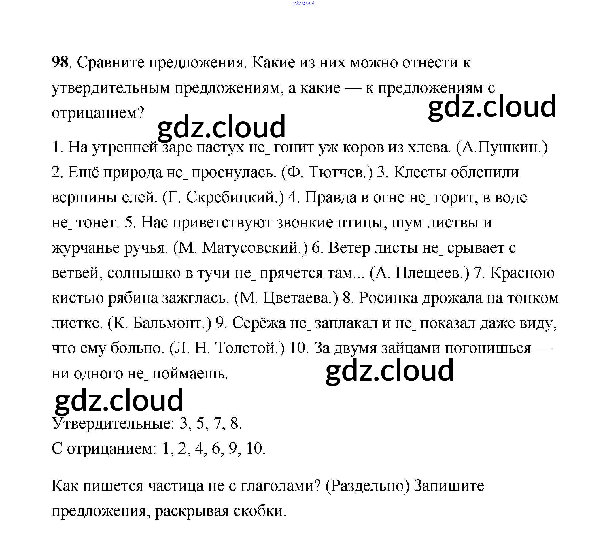 Ответ на задание 98 Учебник Русский язык за 4 (четвертый) класс Климанова, Бабушкина Перспектива 2014 Часть 1, 2