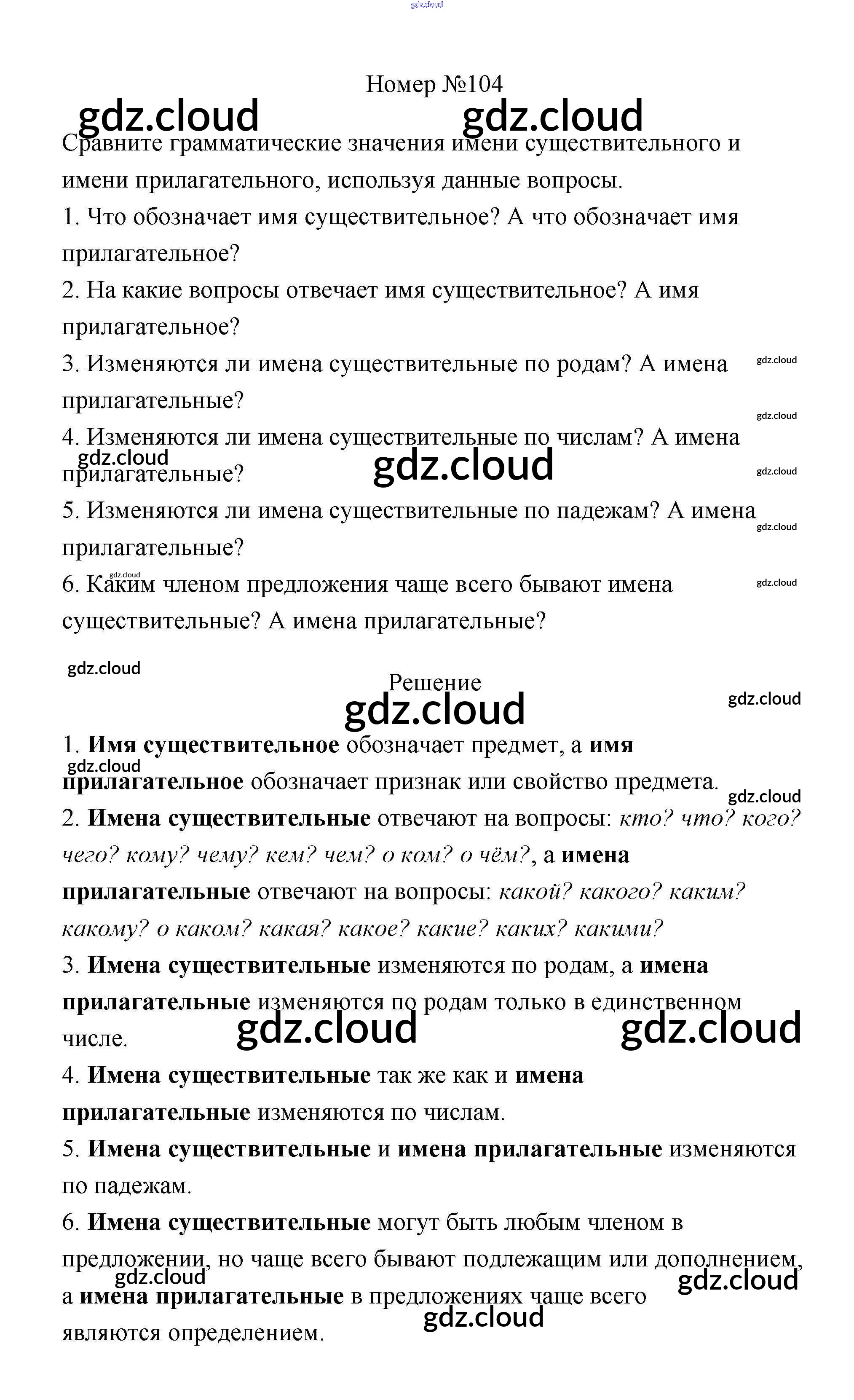 Ответ на задание 104 Учебник Русский язык за 4 (четвертый) класс Климанова, Бабушкина Перспектива 2014 Часть 1, 2