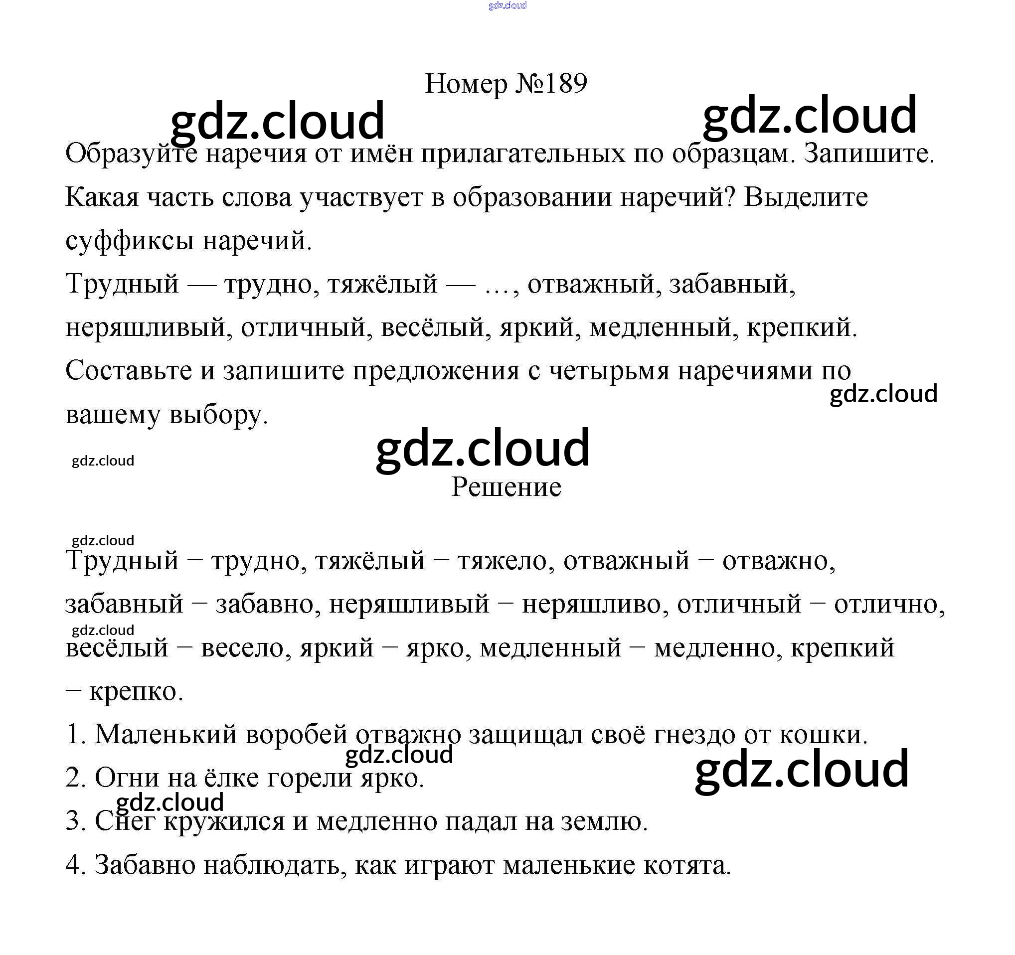 Ответ на задание 189 Учебник Русский язык за 4 (четвертый) класс Климанова, Бабушкина Перспектива 2014 Часть 1, 2