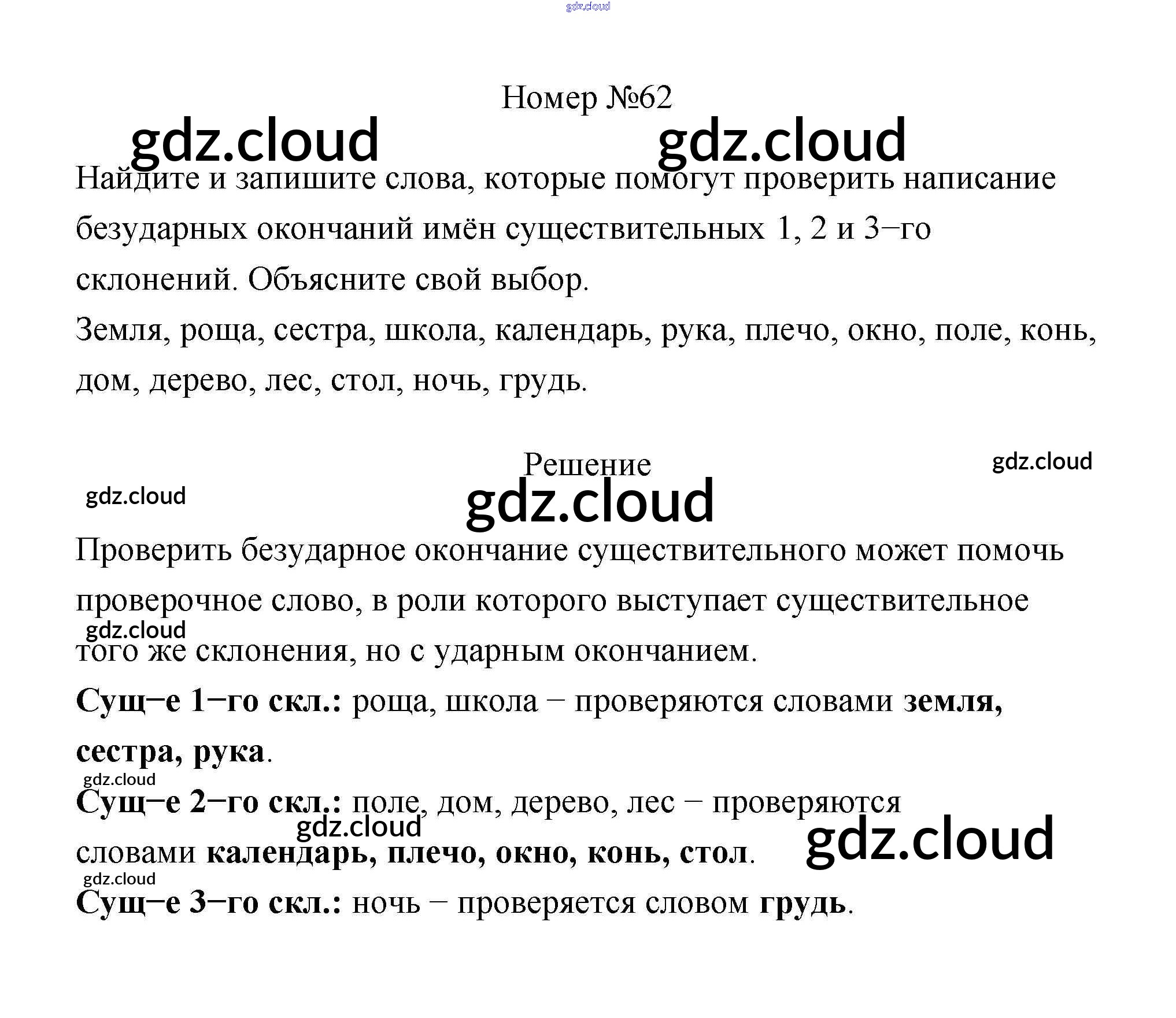 Ответ на задание 62 Учебник Русский язык за 4 (четвертый) класс Климанова, Бабушкина Перспектива 2014 Часть 1, 2