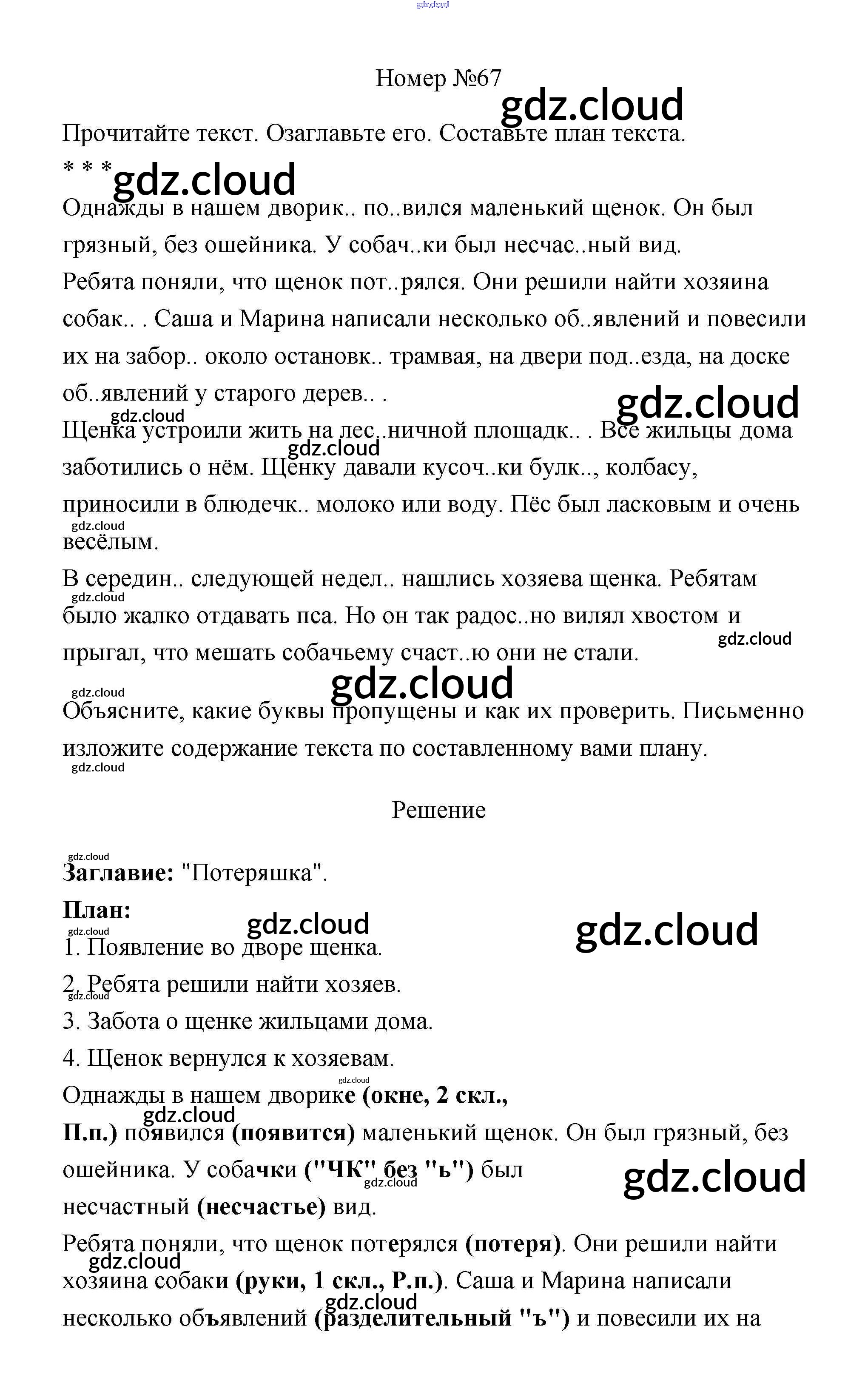 Ответ на задание 67 Учебник Русский язык за 4 (четвертый) класс Климанова, Бабушкина Перспектива 2014 Часть 1, 2