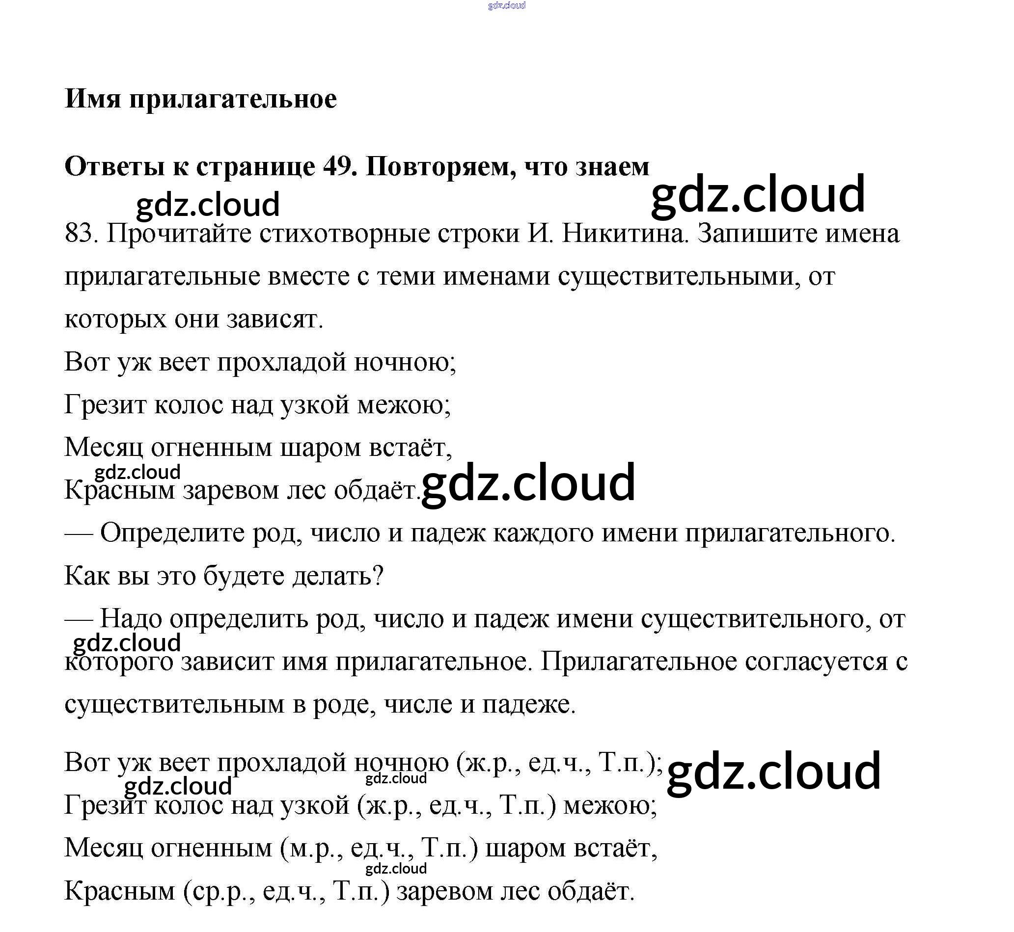 Ответ на задание 83 Учебник Русский язык за 4 (четвертый) класс Климанова, Бабушкина Перспектива 2014 Часть 1, 2