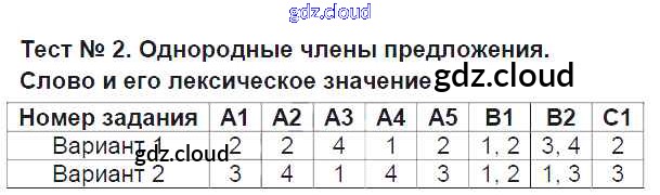 Ответ на задание Тест №2. Однородные члены предложения Контрольно-измерительные материалы (КИМ) Русский язык за 4 (четвертый) класс Крылова 2014