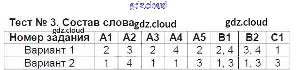 Ответ на задание Тест №3. Состав слова Контрольно-измерительные материалы (КИМ) Русский язык за 4 (четвертый) класс Крылова 2014