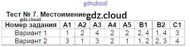 Ответ на задание Тест №7. Местоимение Контрольно-измерительные материалы (КИМ) Русский язык за 4 (четвертый) класс Крылова 2014