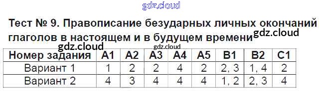 Ответ на задание Тест №9. Правописание безударных личных окончаний глаголов в настоящем и в будущем времени Контрольно-измерительные материалы (КИМ) Русский язык за 4 (четвертый) класс Крылова 2014