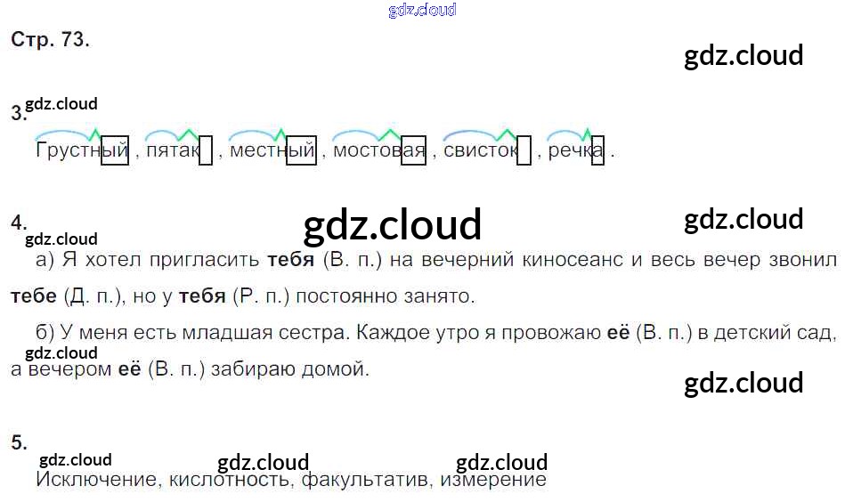 Ответ на задание 73 Контрольные работы Русский язык за 4 (четвертый) класс Крылова УМК 2015 Часть 1, 2 ФГОС онлайн и без номера телефона.