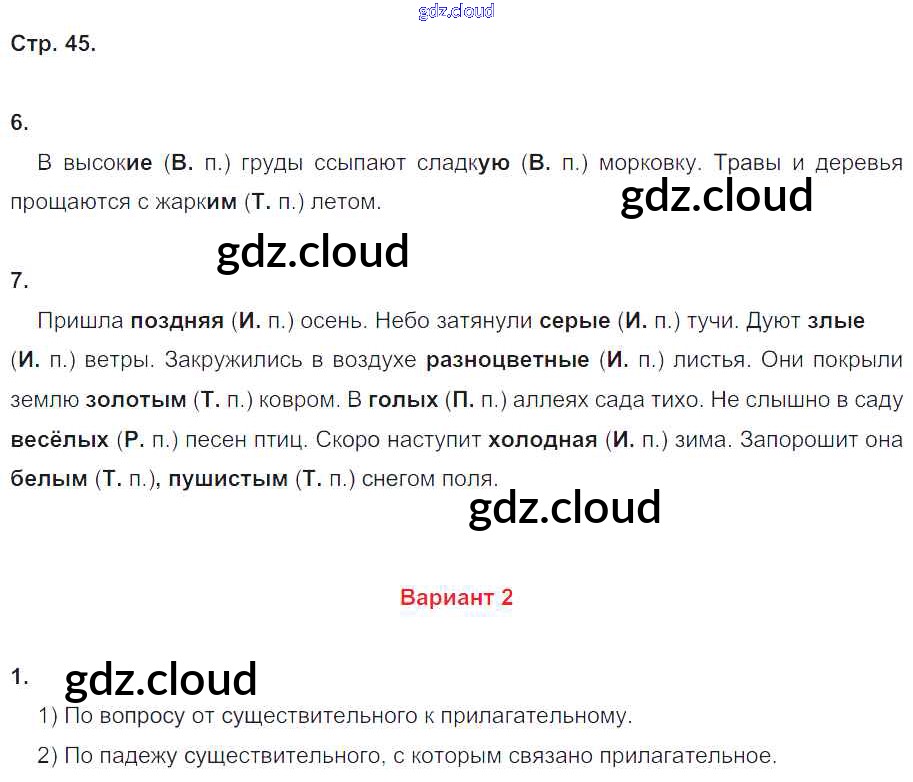 Ответ на задание 45 Контрольные работы Русский язык за 4 (четвертый) класс Крылова УМК 2015 Часть 1, 2