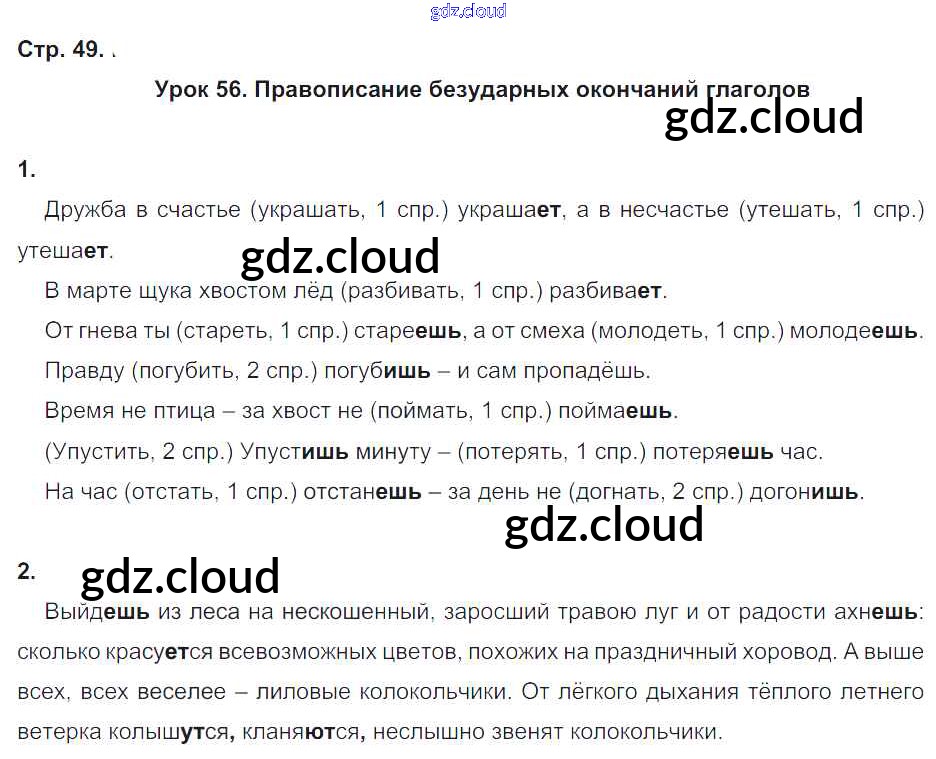 Ответ на задание 49 Рабочая тетрадь Русский язык за 4 (четвертый) класс Кузнецова Начальная школа XXI века 2018 Часть 1, 2