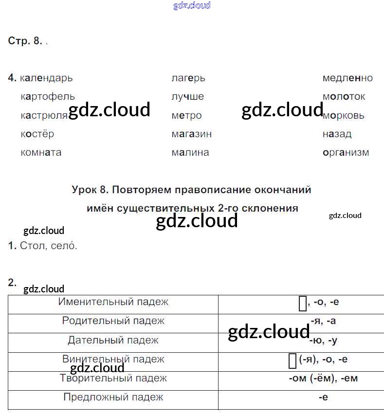 Ответ на задание 8 Рабочая тетрадь Русский язык за 4 (четвертый) класс Кузнецова Начальная школа XXI века 2018 Часть 1, 2
