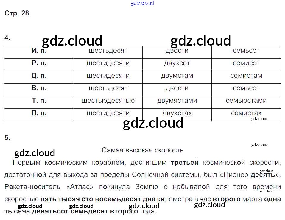 Ответ на задание 28 Рабочая тетрадь Русский язык за 4 (четвертый) класс Кузнецова Начальная школа XXI века 2018 Часть 1, 2