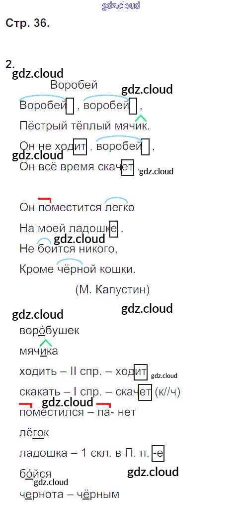 Ответ на задание 36 Рабочая тетрадь Русский язык за 4 (четвертый) класс Кузнецова Начальная школа XXI века 2018 Часть 1, 2