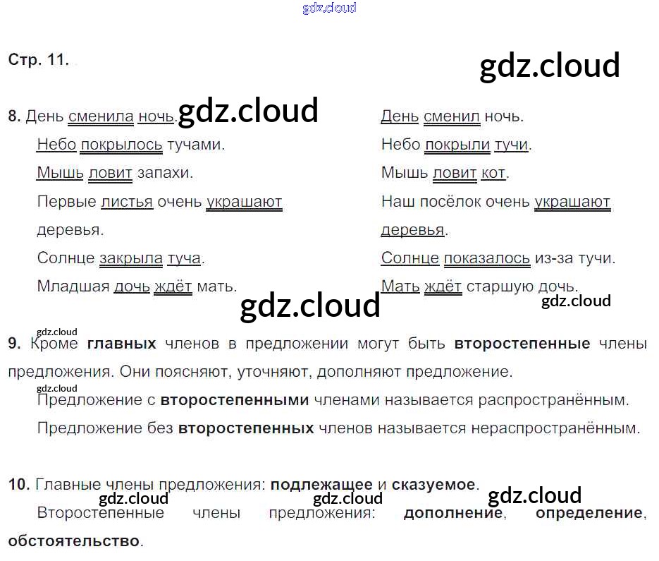 Ответ на задание 11 Рабочая тетрадь Русский язык за 4 (четвертый) класс Кузнецова Начальная школа XXI века 2015
