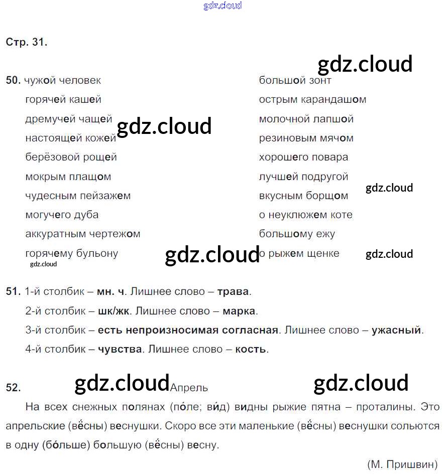 Ответ на задание 31 Рабочая тетрадь Русский язык за 4 (четвертый) класс Кузнецова Начальная школа XXI века 2015