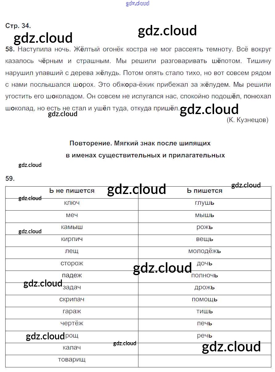 Ответ на задание 34 Рабочая тетрадь Русский язык за 4 (четвертый) класс Кузнецова Начальная школа XXI века 2015