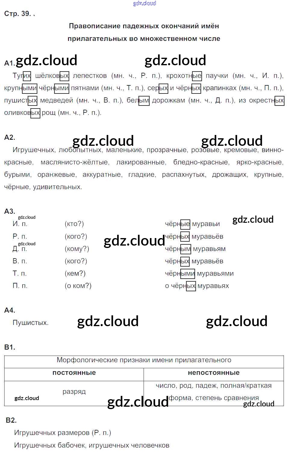 Ответ на задание 39 Тетрадь-тренажер Русский язык за 4 (четвертый) класс Мишакина, Александрова Начальная школа XXI века 2017